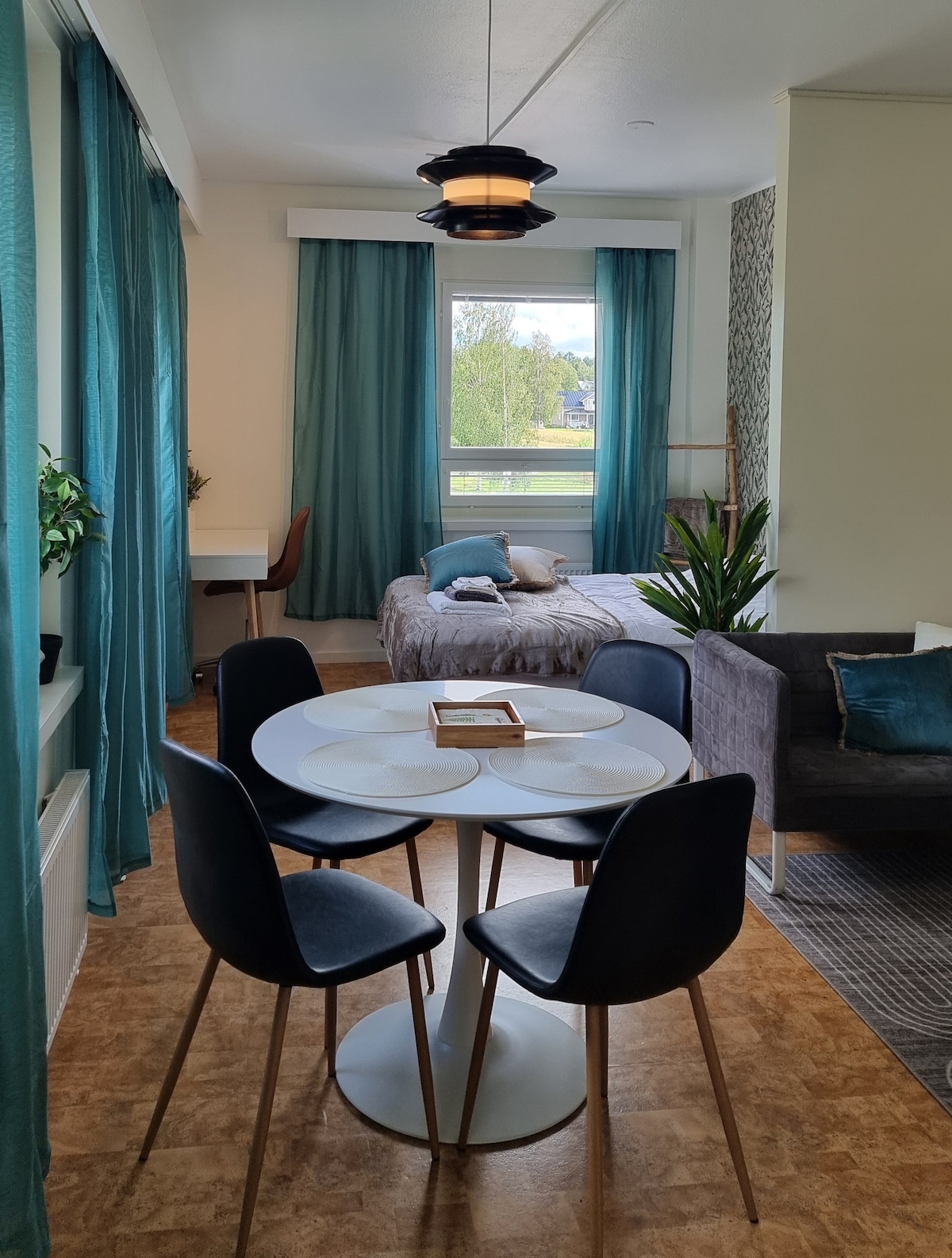 Willkommen in einer gemütlichen Wohnung in der Nähe des Zentrums von Kokkola. Die helle 40 Quadratmeter große Einzimmerwohnung befindet sich im zweiten Stock eines ruhigen und komplett renovierten kleinen Mehrfamilienhauses in der Nähe von Dienstleistungen. Die gemütliche Wohnung ist wunderschön mit modernem Zubehör eingerichtet, und in der Küche findest du in der Küche Vorräte für anspruchsvollere Küche.