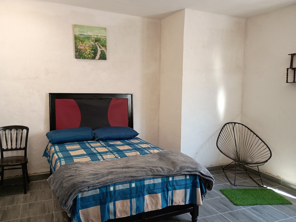 Weniger als 2 km vom Zentrum von Jalpan entfernt, bietet Room San Francisco einen Platz voller Komfort mitten in der Natur. Darin findest du den idealen Ort, um dich nach einem Spaziergang auf den Wegen, die sich innerhalb der Unterkunft oder den wichtigsten Sehenswürdigkeiten der Gegend befinden, auszuruhen oder einfach ein Wochenende zu genießen und auf der Terrasse zu sitzen, um das Lied der Vögel zu hören. Es verfügt über eine Kühlschrankbar, einen elektrischen Teekocher, einen Elektrogrill und Utensilien.