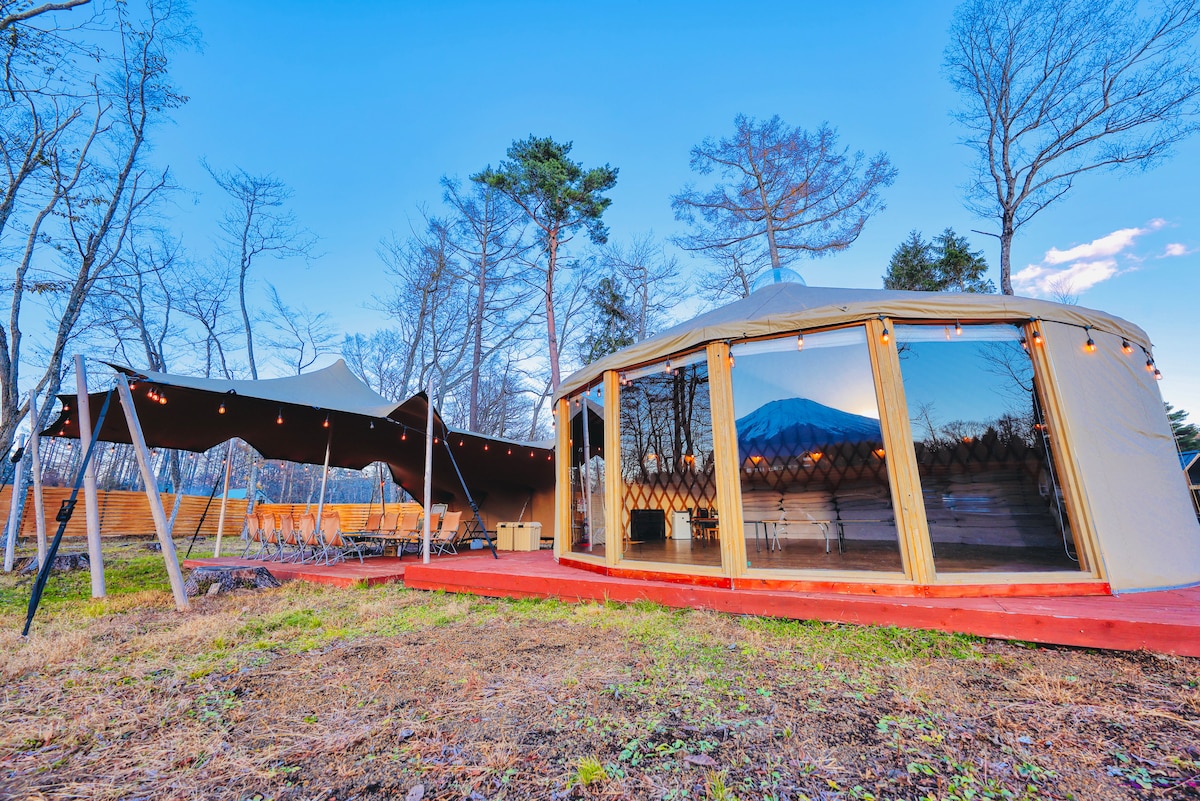 In der Stimmung, eine private Glamping-Anlage mit herrlichem Blick, begrenzt auf eine Gruppe pro Tag - etwas GUTES | Im Fuji-Hakone-Nationalpark, der voller natürlicher Segnungen ist, auf einer Höhe von 1.000 Metern, ist es ein 3-minütiger Spaziergang vom Ufer eines Bergsees entfernt und wurde erst im Dezember 2024 renoviert. Vollständig privater Luxus von etwa 500 tsubo Wäldern, ausgestattet mit Japans größtem Gelzelt mit Klimaanlage und Heizung für 10 Erwachsene und einem Stretchzelt und Snow-Peek-Campingausrüstung, wo du auch bei regnerischem Wetter Campinggrill genießen kannst.Eine neue private Toilette, Dusche und Küche sind neu installiert.Wir haben alle Werkzeuge, die Sie brauchen, also kommen Sie bitte mit leeren Händen.Für Anfänger kannst du einen sicheren und komfortablen Aufenthalt haben. Genieße eine luxuriöse Zeit wie nie zuvor, während du die majestätische Natur von Mt. Fuji und Lake Yamanaka. Du kannst auch die Sauna nutzen (gegen Gebühr).Genieße Mt. Fuji, Bio- und Detoxy-Sauna, bitte probiere Totonoyimas für Körper und Geist. * Es gibt eine separate Gebühr für die Nutzung von Grillgeräten/Feuerstelle/Sauna. * Wir übernehmen ein „Zimmergebührensystem“.Sie bietet Platz für bis zu 10 Personen. * Bitte überprüfe die Vorsichtsmaßnahmen, bevor du eine Buchung vornimmst.