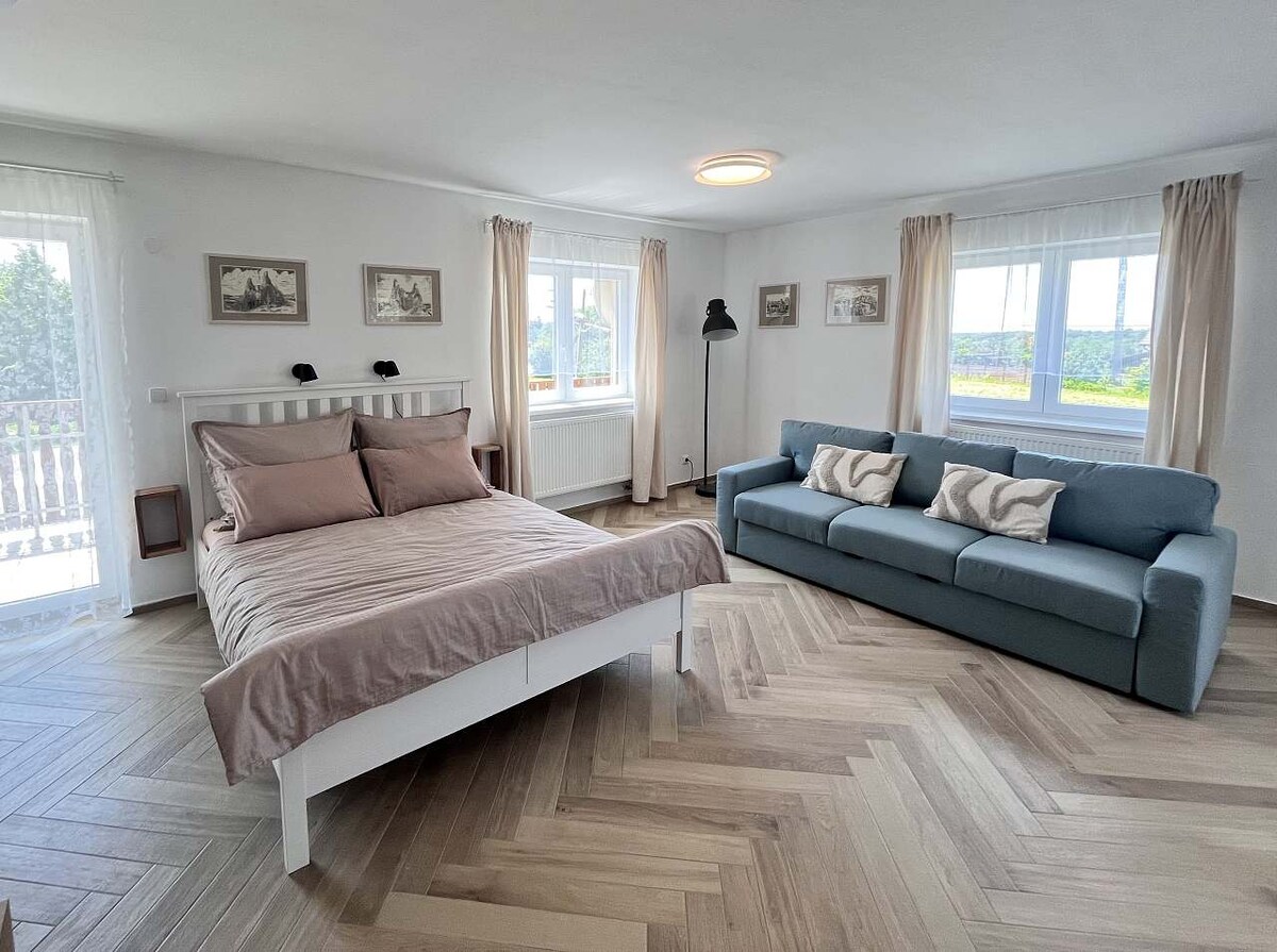 Das Loft Filip befindet sich in der Nähe der märchenhaften Stadt Jičín, an der Grenze zum Landschaftsschutzgebiet Český ráj. Die Wohnung ist Teil eines neuen modernen Hauses, verfügt über einen separaten Eingang und einen Parkplatz auf dem Grundstück. Die Unterkunft ist für Paare und Familien geeignet und befindet sich im ersten Stock. Die Lage der Wohnung lädt vor allem zu Ausflügen in die Natur ein. Der ruhige Charakter des Dorfes kann sehr leicht durch ein abwechslungsreiches Angebot an Aktivitäten im nahe gelegenen Jičín ersetzt werden.