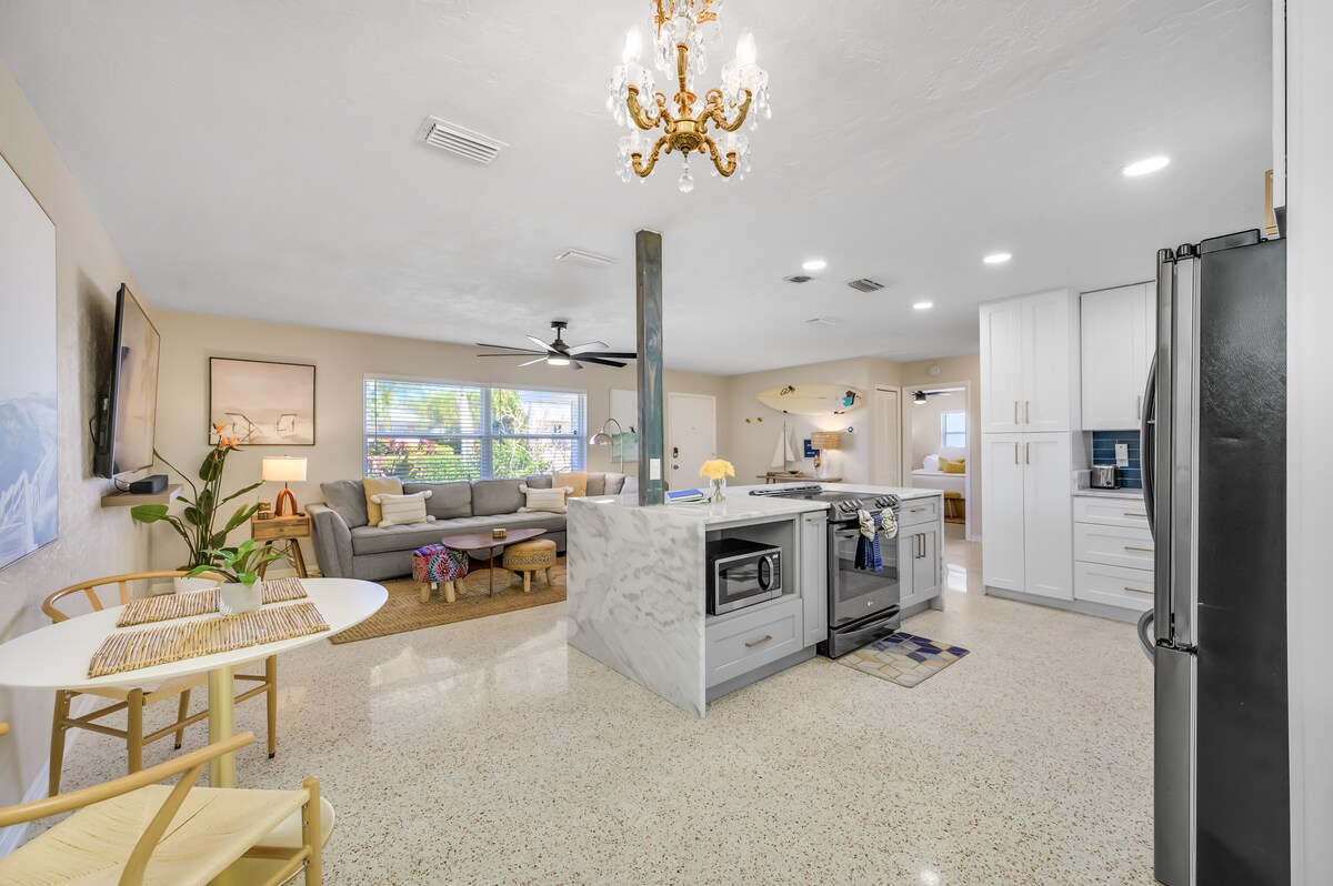 Du wirst dich in die Gegend VERLIEBEN, die so nah an allem ist. Helle, offene Design-Suite mit kompletter Küche, komplettem Bad, Klimaanlage, WLAN (100 Mbit/s), privatem Eingang und allen Annehmlichkeiten von zu Hause. Neues Queensize-Bett. Du bist 15 Minuten vom St Pete Beach und 10 Minuten von der Innenstadt von St Pete entfernt. Du hast Parkplätze abseits der Straße. Sehr sichere und ruhige Lage. Einfacher Check-in über Schlüsselbox. Du hast wunderschöne Gärten rund um die Unterkunft und eine fantastische Terrasse. Wir haben viele geheime Orte zu empfehlen.