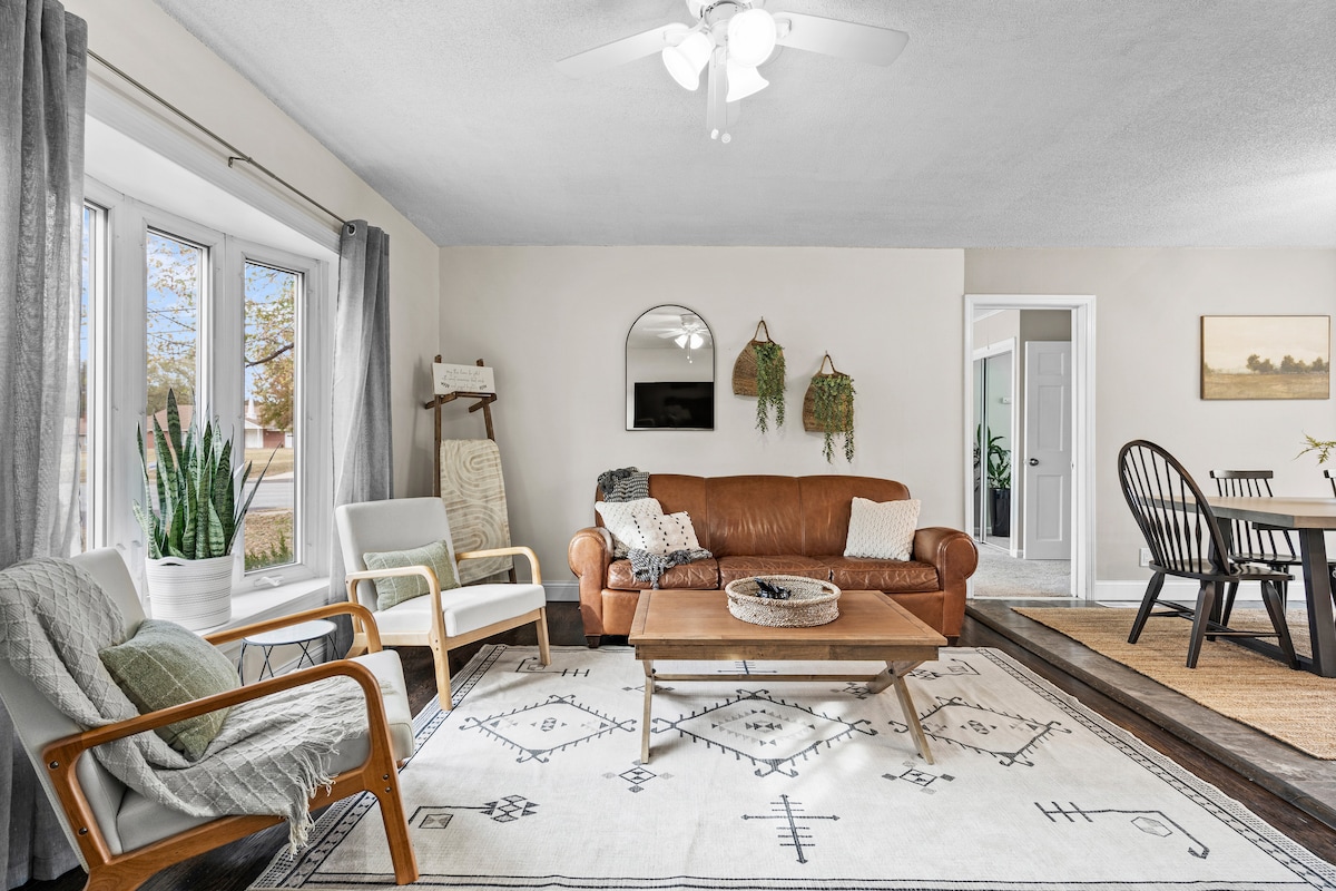 Das Hadley Cottage ist ein toller Ort, um die Familie für eine unterhaltsame Auszeit oder perfekt für deine Arbeitsbedürfnisse mitzubringen. Dieses schicke und moderne Ferienhaus liegt 3 Minuten von der I-35 entfernt und ist günstig gelegen, um dich schnell überallhin in der KC-U-Bahn zu bringen. Dies ist eine ruhige Gegend mit breiten Gehwegen, nur wenige Gehminuten von Restaurants oder Einkaufsmöglichkeiten entfernt. Das Ferienhaus verfügt über ein renoviertes Interieur im Jahr 2022, einen riesigen eingezäunten Garten und eine lange Einfahrt für ausreichend Parkplätze.