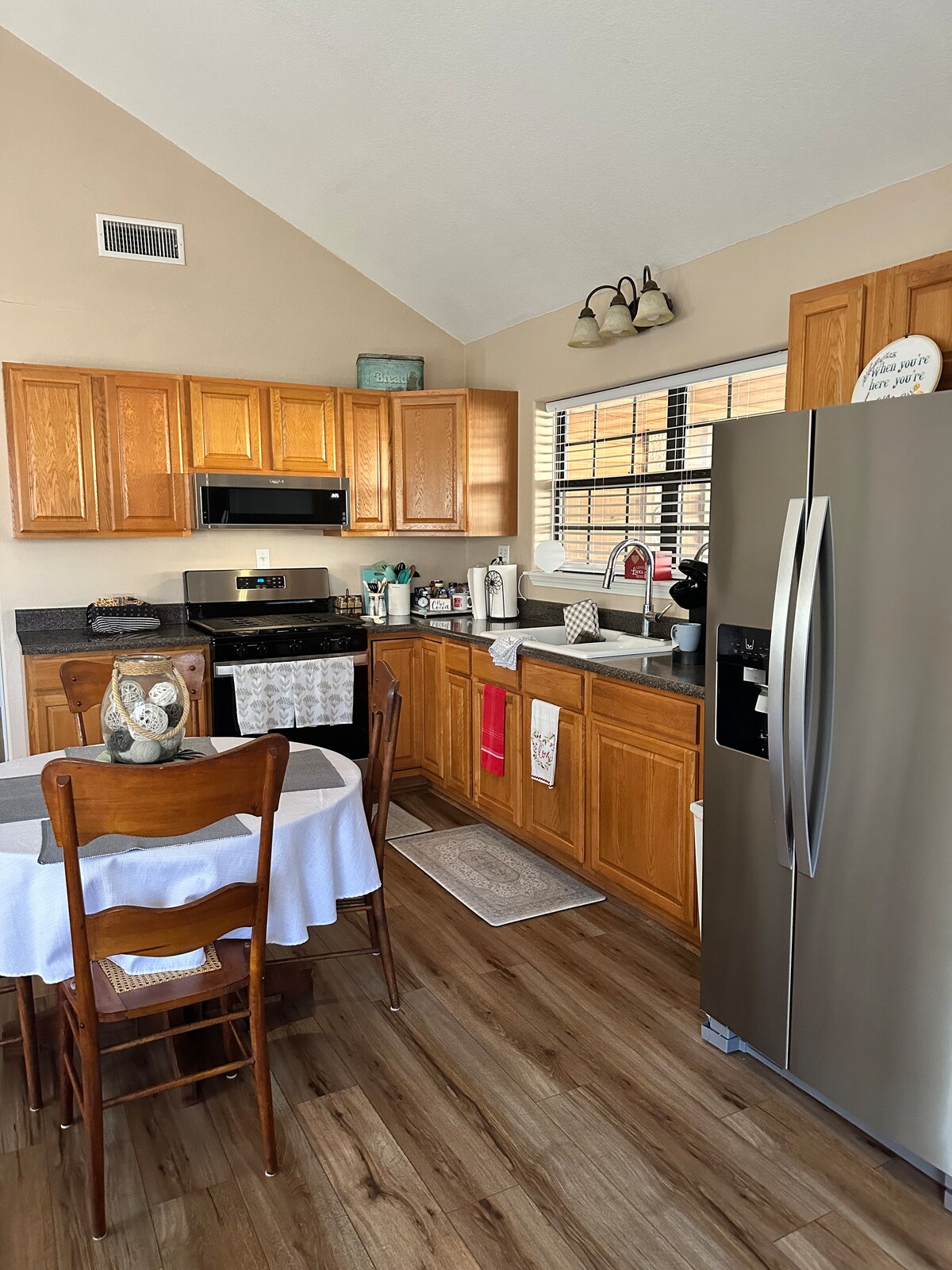 Wenn du es liebst, von freundlichen, neugierigen Schafen begrüßt zu werden, bist du hier genau richtig! Willkommen auf unserem kleinen Bauernhof, wir lieben es, wenn sich Gäste in unserem kleinen Bauernhaus wie zuhause fühlen. Setz dich mit einer Tasse Kaffee auf die Veranda und beobachte, wie die Schafe, Ziegen und Pferde grasen. Setz dich im Sommer nachts auf die hintere Veranda und beobachte die schönen Glühwürmchen! Dies ist ein Ort zum Entspannen und Erholen von der Hektik, während du einen kleinen Vorgeschmack auf das Landleben genießt.