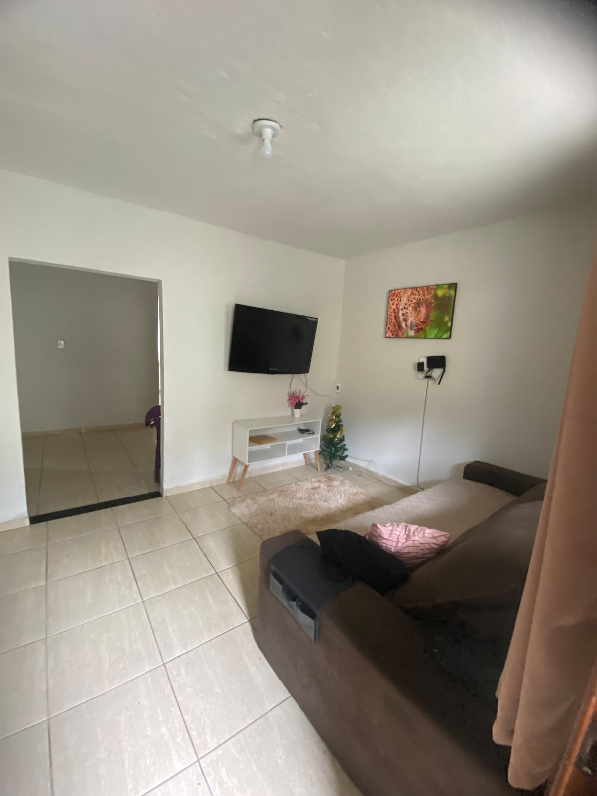 Casa aconchegante arejada e reformada, sala com sofá cama para 2 pessoas e tv 50. Com estacionamento gratuito. Ar condicionado portáteis nos quartos , ventiladores e climatizadores ,geladeira ,adega de vinho , churrasqueira elétrica , Lençois cobertores e toalhas, utensílios de cozinha completo . 3TVs smart. 1° quarto 1cama de casal e 2 colchões infláveis extra de casal . 2° quarto temos 2 camas box novas de solteiro, molas ensacadas. 08 travesseiros da NASA, toalhas e cobertores