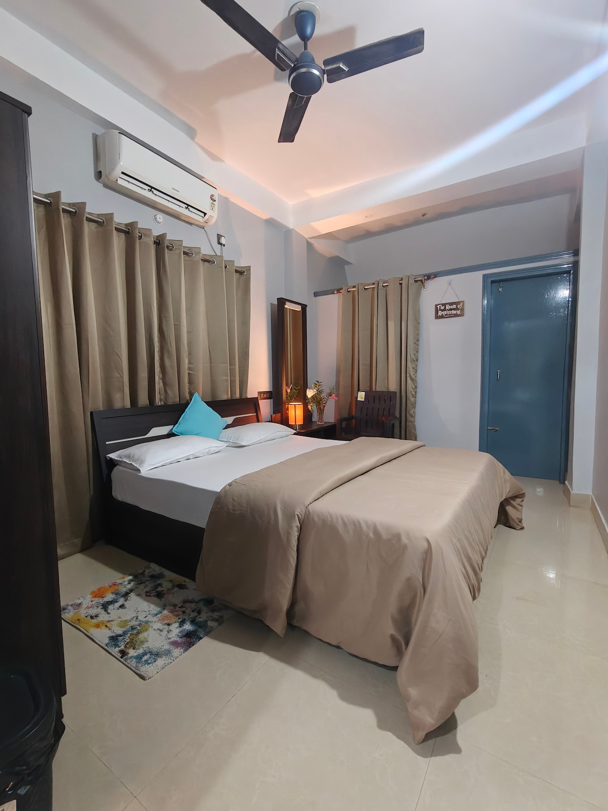 Willkommen in unserer gemütlichen und durchdacht gestalteten 3-Zimmer-Wohnung, perfekt für Familien, Gruppen oder mobile Arbeiter! Jedes Schlafzimmer verfügt über ein komfortables Queensize-Bett, einen Deckenventilator, einen Kleiderschrank mit Schließfach und eine eigene, einzigartige Atmosphäre. Zimmer 1: Unterhaltungsraum mit TV Zimmer 2: Das einzige Zimmer mit Klimaanlage, Arbeitsplatz und Geschichtenbüchern Zimmer 3: Erholungsraum zum Entspannen oder Strecken Genieße eine funktionale Küche, Highspeed-WLAN, einen Gemeinschaftsbereich mit indischen und westlichen Toiletten, ein separates Badezimmer mit Geysir und kostenlose Parkplätze!