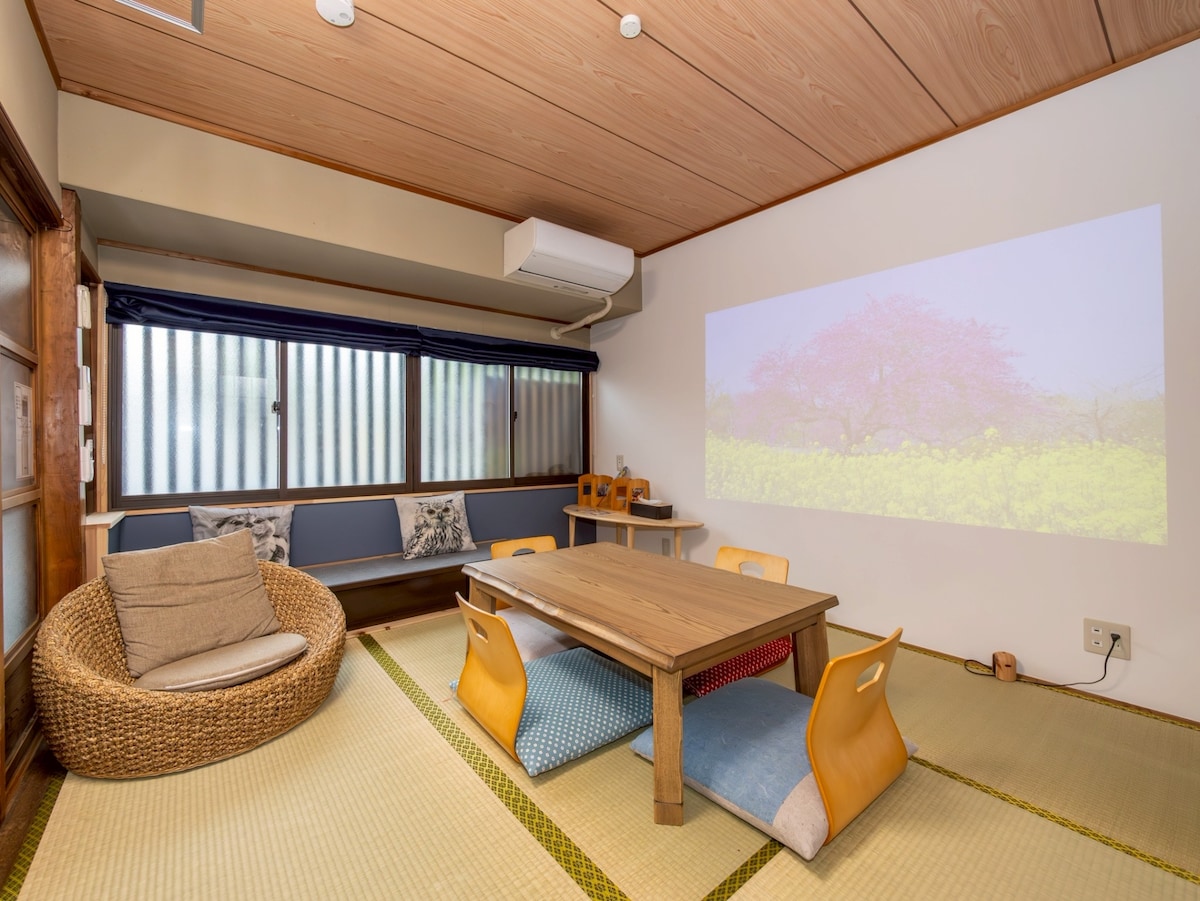 Willkommen in unserem Riverview Hotel in Uji, Kyoto. Bitte genießen Sie die schöne Landschaft entlang des Flusses und verbringen Sie eine erholsame Zeit. Heidain, Ujigami-Schrein und der Bahnhof Keihan Uji sind alle innerhalb von 10 Minuten zu Fuß erreichbar und somit die perfekte Lage für Sightseeing! Da bis zu 8 Personen bei uns übernachten können, ist es der perfekte Ort für eine wertvolle Zeit mit Ihrer Familie oder Freunden. [Empfohlene Punkte] Riverview: Die Aussicht auf den Fluss aus dem Fenster schafft eine besondere Atmosphäre. Genießen Sie das Morgenlicht und den Blick auf den Sonnenuntergang. Geräumiges Wohn-Esszimmer: In diesem geräumigen Raum können Sie sich mit Familie und Freunden in Ruhe entspannen. BOSE Spatial Audio: Hochwertige Audioausrüstung, die Ihre Lieblingsmusik und Filme wie eine besondere Inszenierung klingen lässt. Netflix verfügbar: Genießen Sie Filme und Dramen auf der großen Leinwand mit dem Projektor. So wird die Nacht auf Ihrer Reise noch spezieller. Spezielle Möbel: Wir haben einen komfortablen und stilvollen Raum mit sorgfältig ausgewählten, hochwertigen Designermöbeln eingerichtet. [Bettenanordnung] Schlafzimmer: 4 Einzelbetten + 1 Doppelbett Wohnzimmer: 1 Doppelbett