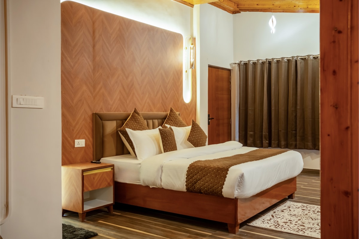 Experience the breathtaking beauty of the Himalayas from our Mountain View Deluxe Rooms, where luxury meets nature. Enjoy complimentary access to the nearby river stream, where you can unwind to the soothing sounds of flowing water. take advantage of our free parking, indulge in delicious meals at our on-site restaurant, and stay connected with complimentary WiFi. For those seeking adventure, we offer a variety of exciting paid activities to make your experience truly unforgettable.