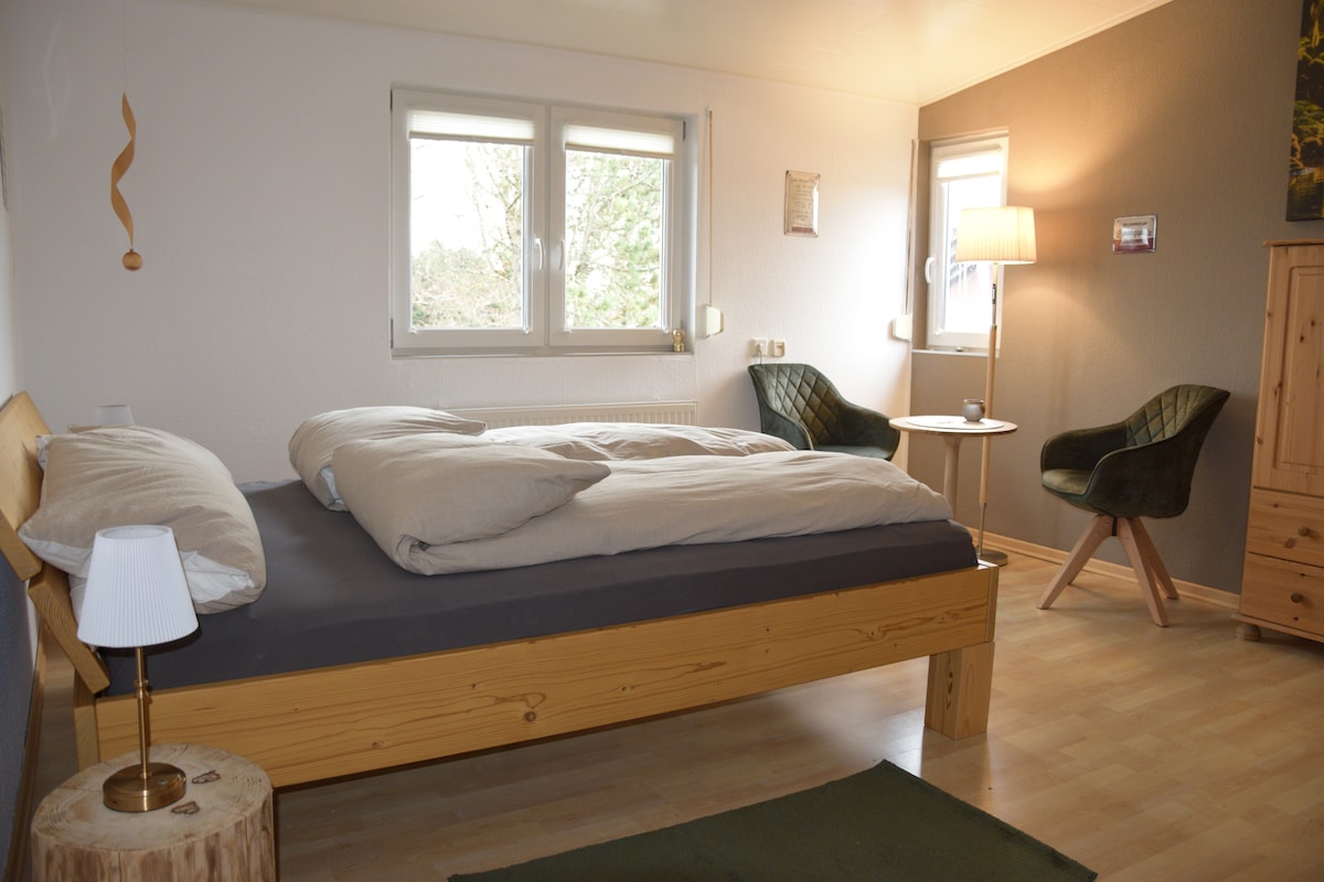 Willkommen in Ihrer gemütlichen Auszeit im Nordschwarzwald! Unsere charmante 40 qm große Ferienwohnung bietet Platz für bis zu 2 Personen und überzeugt mit einer einladenden Atmosphäre. Die Wohnung verfügt über ein separates Schlafzimmer mit einem Doppelbett (140 cm), ein behagliches Wohnzimmer, eine gut ausgestattete Küche sowie ein modernes Badezimmer. Parkmöglichkeiten sind direkt an der Unterkunft vorhanden. Einkaufsmöglichkeiten, Bahnanbindung und Ortsmitte sind in ca. 8 Minuten erreichbar.