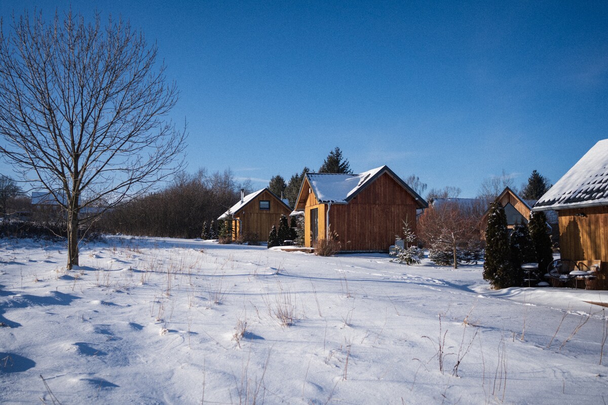 Die Sommerhäuser in Gai in Radomice sind ein ganzjähriger, intimer Ort, der für einen romantischen Urlaub zu zweit geschaffen wurde. Sie befinden sich am Südhang des Bóbr Valley Landscape Park, inmitten von Wäldern, mit Blick auf das Isergebirge und das Riesengebirge und bieten Ruhe, Privatsphäre und Nähe zur Natur. Jedes Ferienhaus verfügt über einen privaten Whirlpool, ein modernes Interieur, einen Kamin und eine vollständige Ausstattung – perfekt für einen ruhigen Neustart und einzigartige Momente.