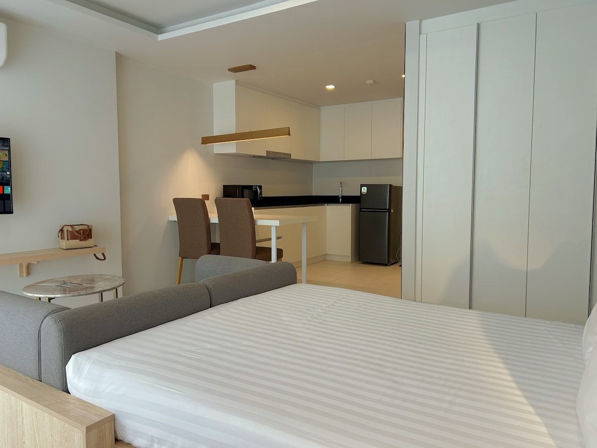 Dies ist eine brandneue moderne Wohnung in der Nähe des Strandes von Karon, nur etwa 800 Meter (10 Gehminuten) vom Strand entfernt. Die Lage ist günstig zum Leben.Dies ist eine der beliebtesten und relativ ruhigsten Urlaubsgebiete am Südwestufer von Phuket und ideal für Reisende, die sich entspannen und das Inselgefühl genießen möchten. Die Wohnung ist ca. 35 qm groß, für ein Einzelzimmer konzipiert, modern und einfach, mit Highspeed-WLAN, nach dem Check-in Wasser, Strom, Netzwerk sind alle inbegriffen, ohne Aufpreis. Das Zimmer ist komplett mit Küchenausstattung ausgestattet - Kühlschrank, Mikrowelle, Induktionsherd usw., um deine eigenen Mahlzeiten zu kochen. Wir haben auch durchdacht Mineralwasser und einige Toilettenartikel beim Check-in vorbereitet, damit Sie Ihre Taschen mitbringen können. Mit zwei Infinity-Pools auf dem Dach, einem Fitnessraum und einem Restaurant kannst du den herrlichen Blick auf Karon Beach am Pool für einen erholsamen Urlaub genießen. 📍 Lage und nahegelegene Sehenswürdigkeiten 🚶♀️ Karon Beach: ca. 800 Meter, 10 Gehminuten entfernt 🚗 Kata Beach: ca. 5 Minuten Fahrt (2,5 km) 🚗 Patong Beach: ca. 10 Minuten Fahrt (6 km) 🚗 Chalong-Tempel: ca. 15 Minuten mit dem Auto 🚗 Big Buddha: ca. 20 Autominuten entfernt 🚗 Phuket-Stadt: ca. 25 min Fahrt Supermarkt, Massagegeschäft und Nachtmarkt in der Umgebung, sehr praktisch zum Leben und zur Unterhaltung.