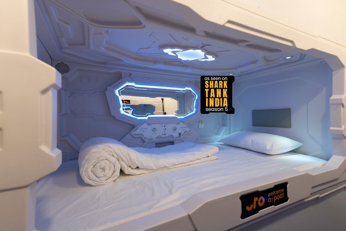Genieße einen modernen und komfortablen Aufenthalt in der Nähe des Ausgangspunkts für die Vaishno-Devi-Yatra. Dieses private Pod-Zimmer im japanischen Stil ist für bis zu 4 Gäste ausgelegt und verfügt für zusätzlichen Komfort über ein angeschlossenes Badezimmer. Das Zimmer verfügt über Klimaanlage, Highspeed-WLAN, Smart-LED-Fernseher, USB- und Typ-C-Ladeanschlüsse, stimmungsvolle Beleuchtung und hochwertige Bettwäsche. Sauber, sicher und preisgünstig – ideal für Familien und kleine Gruppen, die Katra besuchen.