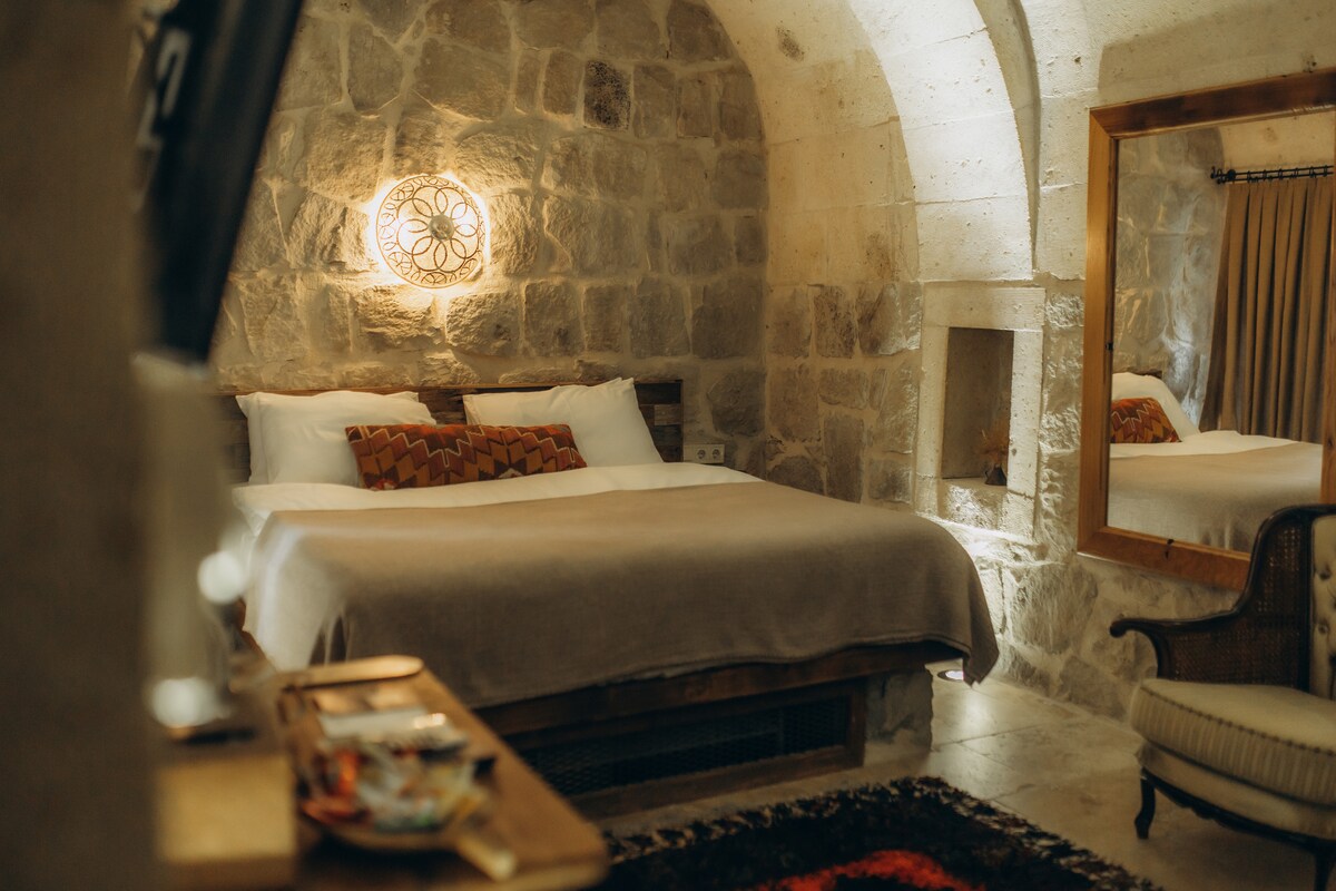 Das Sedirli Konak Cave Room in einer Priesterschule aus dem 18. Jahrhundert bietet eine perfekte Mischung aus Geschichte und modernem Komfort. Dieses einzigartige Zimmer verfügt über eine authentische, steingeschnitzte Architektur und eine ruhige Veranda zum Entspannen und Genießen der Atmosphäre. Die Unterkunft wurde 2021 mit viel Liebe zum Detail restauriert und verbindet traditionellen Charme mit modernen Annehmlichkeiten. Sie ist der perfekte Rückzugsort für Reisende, die ein authentisches Höhlenerlebnis in Kappadokien mit einer geschichtsträchtigen Vergangenheit suchen.