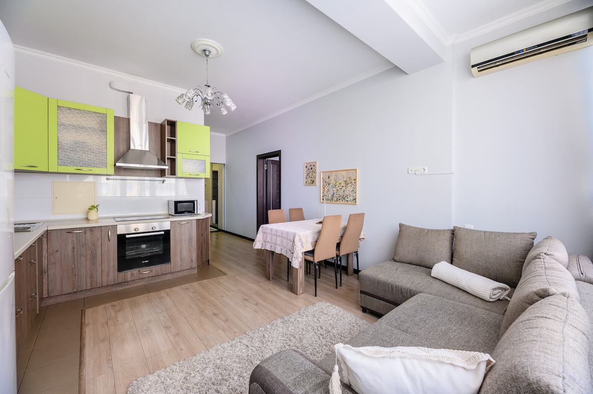 Ein neues Studio im Herzen der Stadt Almaty, in einem Eliteviertel. Gehzeiten: raimbek Metro Station, Arbat, Green Bazaar, Almaty-2 Bahnhof, Park 28 Panfilovites, Central Recreation Park, Zoo, Museum of Folk Instruments, Theater, Kinos. Die Wohnung verfügt über alles, was du für einen angenehmen Aufenthalt benötigst: Kühlschrank, Mikrowelle, Wasserkocher, Klimaanlage, Herd, Waschmaschine, TV, Bügelbrett, Bügeleisen, Geschirr, WLAN, Smart-TV.