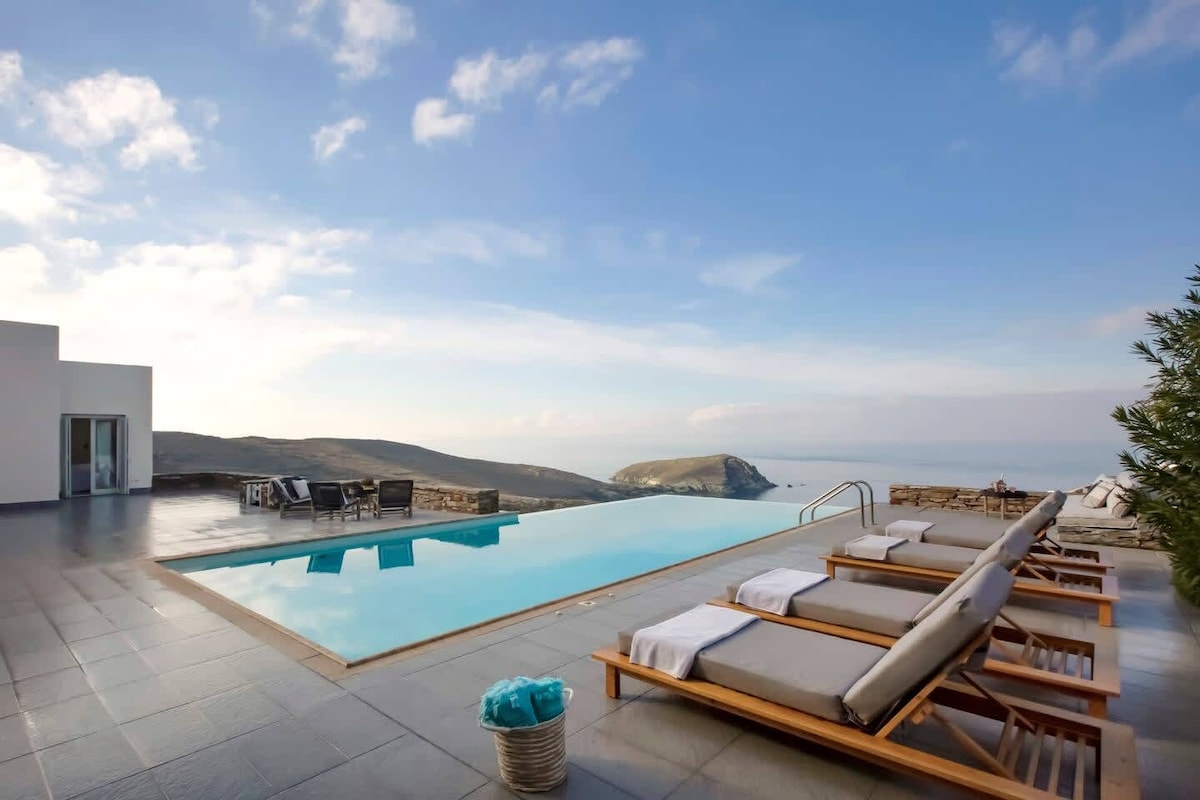Située à 5 minutes de Korissia le principal port de l'île, la villa Stellios est un havre de paix bénéficiant d’une vue époustouflante sur la mer Égée. Son superbe intérieur contemporain de 150 mètres carrés, offre tout le confort nécessaire à un agréable séjour en famille ou entre amis, et pour des instants de détente privilégiés de spacieuses terrasses et d'une piscine extérieure agrémentée d’un jacuzzi. Enfin pour le plaisir d'un lieu unique, la villa Stellios dispose d'une chapelle privée.