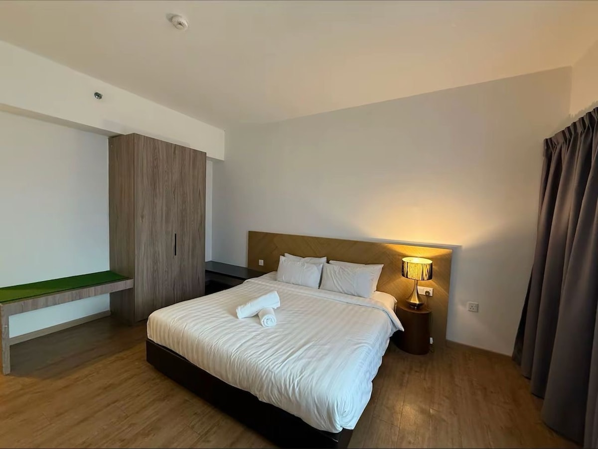 Welcome to Tunjung Amber, a stylish hotel-inspired studio designed for comfort, convenience and a touch of modern luxury. Perfect for solo travellers, couples, or short business stays, this 314 sqft offers a cozy yet functional space right in the heart of Tunjung, Kota Bharu. Thoughtfully designed with a minimalist, hotel-core aesthetic, the unit features a comfortable bed, clean linens, and a relaxing ambiance. Whether you are here to unwind ir explore, Tunjung Amber is your perfect home base