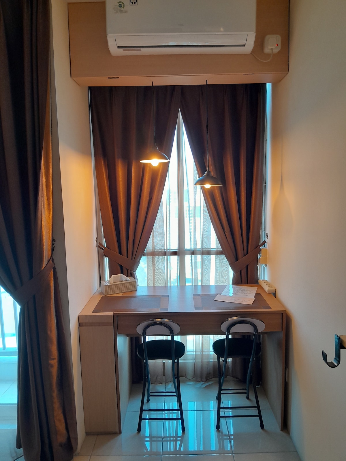 Nearby to JIEXPO and JIS, our studio at Maplepark apartment offers modern comfort, high-speed internet & Netflix. The open-plan layout features sleek furnishings, abundant natural light, and seamless working, & sleeping areas. The well-equipped kitchenette and plush sleeping area ensure comfort and practicality. With easy access to your events and a private balcony offering pool views, this studio combines urban sophistication with cozy charm, making it the perfect home in the heart of Jakarta.