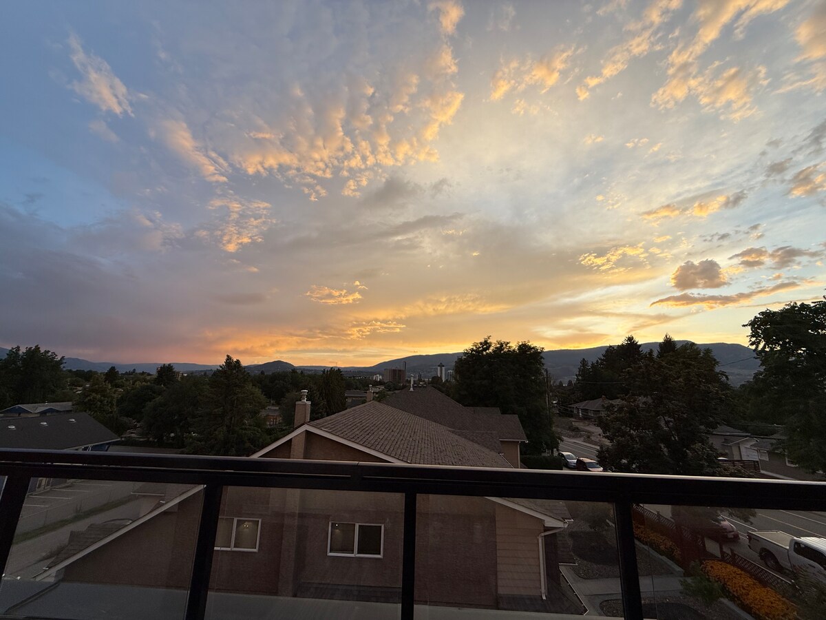 Genieße von diesem schönen Zimmer mit raumhohen Fenstern einen atemberaubenden Blick auf den See und die Berge. Entspanne dich in dieser gemütlichen Suite mit einem privaten Eingang und einer Terrasse. Entspanne dich in der Badewanne oder Regendusche, schlüpfe in einen Bademantel und genieße nach einem Tag voller Erkundungen ein Glas Wein bequem von deinem Zimmer aus. Unser Airbnb ist ideal für Gäste, die einen ruhigen, erholsamen Aufenthalt zu schätzen wissen. Nicht für laute Versammlungen oder Partys geeignet. In der Nähe des Knox Mountain gelegen, 7 Minuten Fahrt von der Innenstadt, den Stränden und der Natur entfernt.