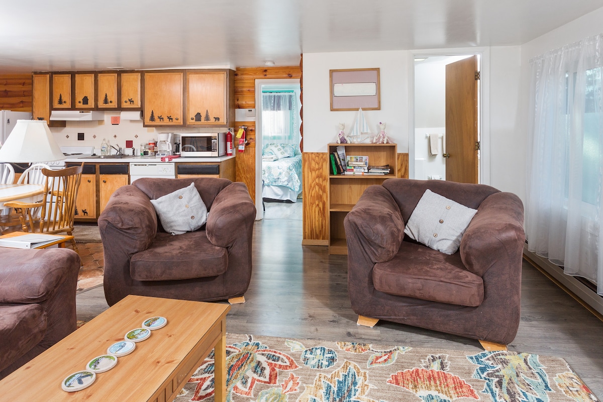 Blockhaus mit 2 Queensize-Betten. Im Winter ist dies meine Garage, aber im Sommer ist es eine tolle „Hütte“. Kein Wasser in der Hütte. Mikrowelle, Kühlschrank, überdachter Bereich mit Gasgrill, Raumheizung, eigenes Dusch-/Toilettenhaus. Feuerstelle, kein Holz geliefert. Der Zugang zum Kenai Lake ist 1 Meile entfernt, toller Strandspaziergang. Fische auf dem Kenai, 1,5 Meilen entfernt oder fahre 6 Meilen zum Russian River. Hunde sind erlaubt, aber du kannst sie nicht allein in der Hütte lassen, es sei denn, sie befinden sich in einem Zwinger. Wenn Tage nicht verfügbar sind, frage bitte, ich könnte geöffnet sein.