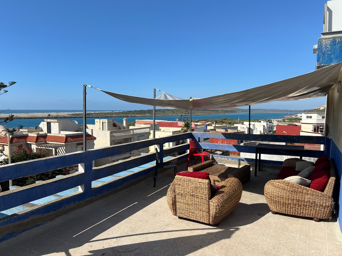 Schöne Wohnung im Obergeschoss möblierte Villa zur Miete für den Urlaub, gute Lage in Mehdia Plage. Bestehend aus einer ausgestatteten Küche, Wohnzimmer mit Billardtisch und Kamin, private Dachterrasse mit Meerblick, Fluss und Wald Maamora, Zwei Schlafzimmer, Bad. Hier haben Sie Ruhe sowie die Nähe zum Strand (2 Minuten zu Fuß). Sie haben auch den Fernseher und eine Nespressomaschine. Wenn viele, ich kann Ihnen das Erdgeschoss hinzufügen (gegen Gebühr)