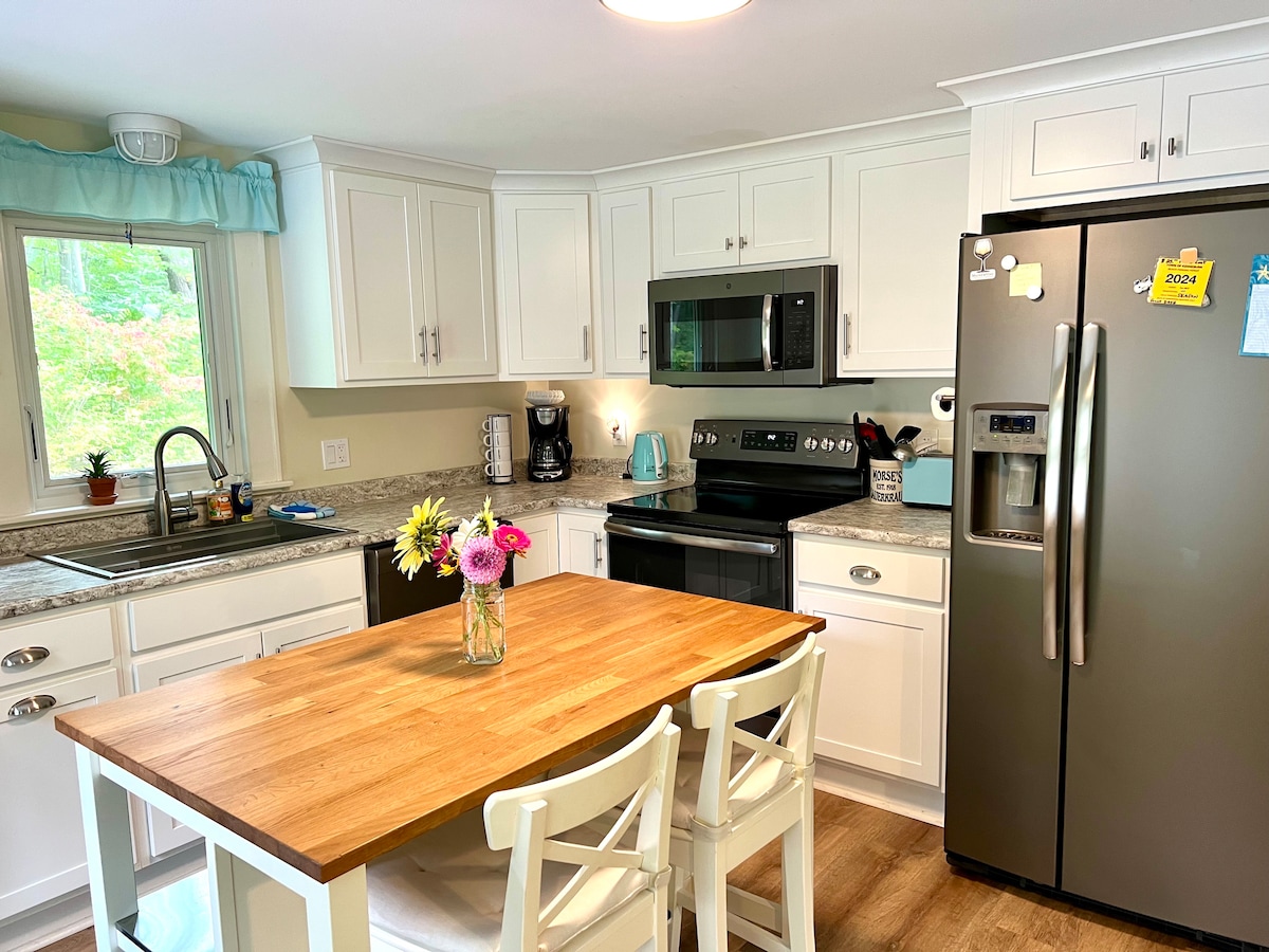 Winterwunderland, in der Nähe von Skifahren und nur einen Spaziergang von tollen Restaurants entfernt. Genieße im Sommer den ruhigen Garten oder spaziere zum Strand! Du musst keinen Parkplatz suchen, meine Unterkunft ist 3/10 Meilen von der Innenstadt von Kennebunkport und 7/10 Meilen von Gooch's Beach entfernt. Du wirst meine Unterkunft wegen der Küche, der Gemütlichkeit und der Lage lieben. Meine Unterkunft ist gut für Paare geeignet. Sie verfügt über ein Tempurpedic-Kingsize-Bett und ein Queensize-Ausziehbett im Wohnzimmer.