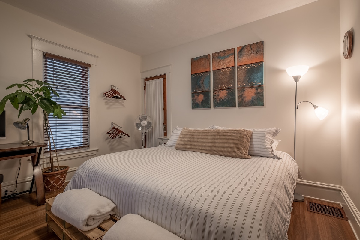 Dieses neu renovierte Haus aus dem 19. Jahrhundert ist wie ein Mehrfamilienhaus eingerichtet. Das Hotel liegt in einem lebhaften Viertel von Grand Rapids an der Medical Mile und alles ist nur eine kurze Autofahrt entfernt! Diese Ein-Zimmer-Unterkunft ist ideal für junge Paare, Geschäftsreisende oder Kurzzeiturlauber, die einzigartige Orte genießen! Dieser Raum verfügt über mehrere Fenster, die es dem gesamten Ort ermöglichen, sich mit Sonnenlicht zu füllen. Wir sind gesetzlich von der Stadt Grand Rapids erlaubt und haben alle Überprüfungen bestanden. KEINE KÜCHE ODER WASCHKÜCHE IN DER EINHEIT