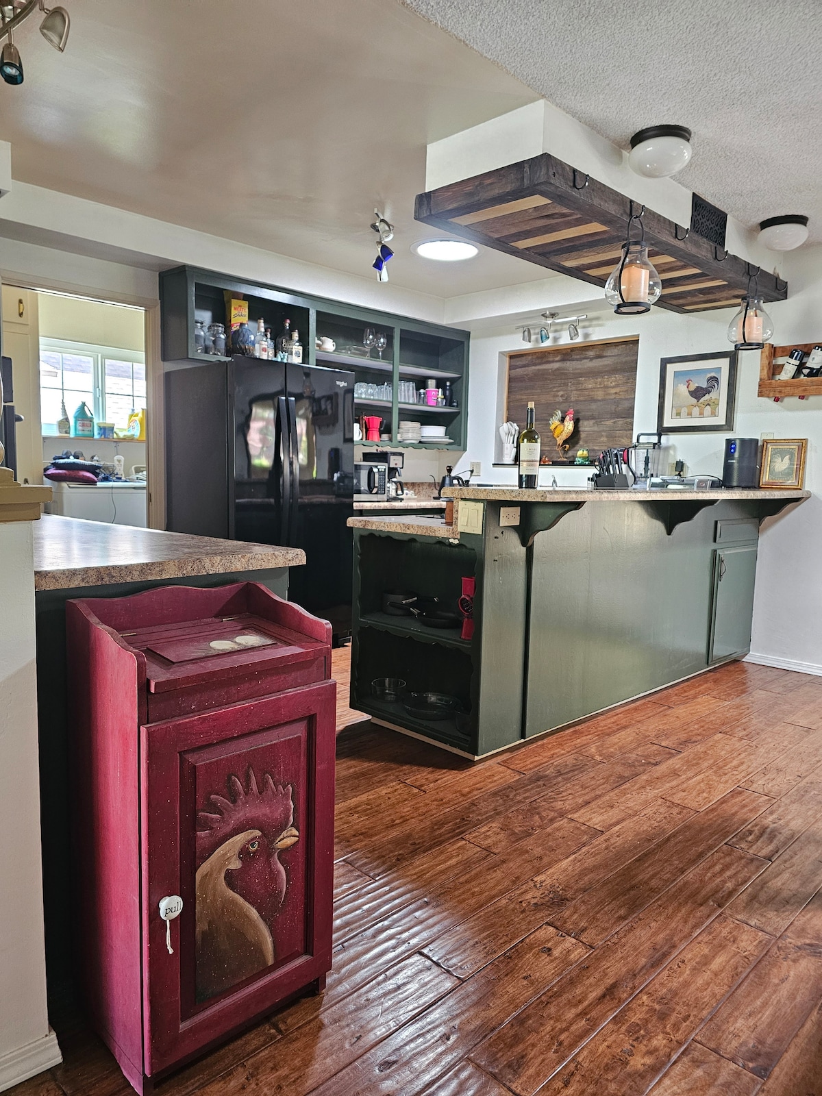 Charmantes 2-Schlafzimmer, 1-Bad mit einer warmen, von der Scheune inspirierten Atmosphäre, die bis zu 6 Gäste beherbergt. Umgeben von schönem Bergblick bietet dieser gemütliche Rückzugsort Komfort und viel Charakter. Egal, ob du in der voll ausgestatteten Küche kochst, den nahe gelegenen See oder Fluss erkundest, es ist für jeden etwas dabei. Beobachte abends den Sonnenuntergang und versammle dich an der Feuerstelle, um unter den Sternen S'mores zu genießen. Haustier- und familienfreundlich, das Red Roof Retreat wird sicherlich dein nächster Lieblingsurlaub sein!
