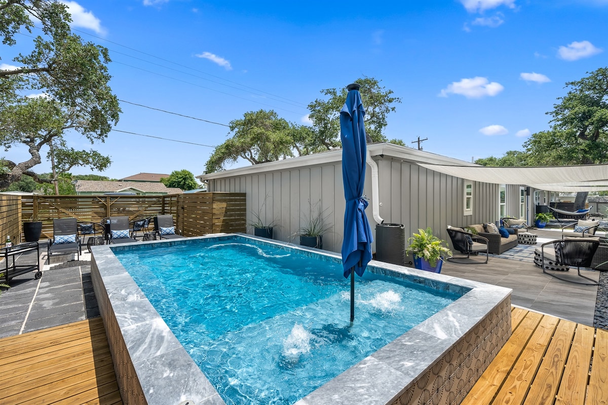 Willkommen in deinem Haus an der Küste! Spaziergang zum Wasser in der sonnigen Innenstadt von Rockport. Nette moderne Casita mit hochwertiger Einrichtung. 2 Schlafzimmer 2 Badezimmer Haus mit zusätzlichem Tagesbett. 3 Blocks zu Fuß zum Wasser mit leichtem Blick auf das Wasser von der hinteren Veranda. Zu Fuß erreichbar – 5 Blocks zu Cafés, Restaurants, Kunstgalerien, Weinbars und ein kurzer 1,4-Meilen-Spaziergang zum Rockport Beach. Perfekter ruhiger Kurzurlaub im angrenzenden Viertel an die Innenstadt, sodass du in der Nähe des ganzen Spaßes bist, aber Frieden und Ruhe zu Hause hast.