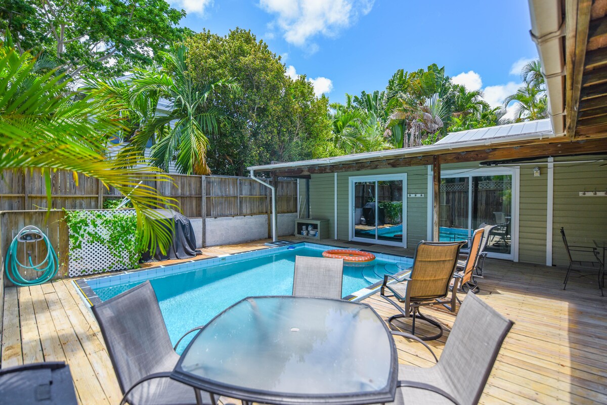 Charmantes Stadthaus mit 3 Schlafzimmern/2 Bädern im Herzen der Altstadt von Key West. Nur wenige Schritte von Restaurants, Bars, Geschäften und Sehenswürdigkeiten entfernt, aber in einer ruhigeren Straße für einen erholsamen Aufenthalt. Zwei Schlafzimmer mit Queensize-Betten im Erdgeschoss, ein Hauptschlafzimmer mit Kingsize-Bett und Balkon im Obergeschoss sowie ein Schlafsofa mit Queensize-Bett für 8 Personen. Genieße eine große private Terrasse, die perfekt für morgens Kaffee, zum Entspannen oder Grillen ist. Die ideale Mischung aus Komfort, Platz und unschlagbarer Begehbarkeit.
