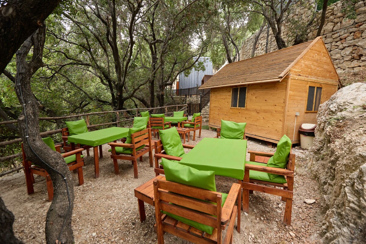 Gemütliches, privates Baumhaus mit Panoramablick, einem beheizten Whirlpool im Freien und einem intelligenten Projektor mit Netflix. Mit Queensize-Bett, komplettem Badezimmer, Küchenzeile, Grill, Feuerstelle, Hängematte, Brettspielen und WLAN. Eines von drei einzigartigen Baumhäusern auf demselben Grundstück — perfekt für Paare oder Freunde, die gemeinsam buchen. Frühstück, Wein-/Käseplatten und Lieferservice verfügbar. Ein ruhiger Rückzugsort in der Natur, nur 40 Minuten von Beirut entfernt.