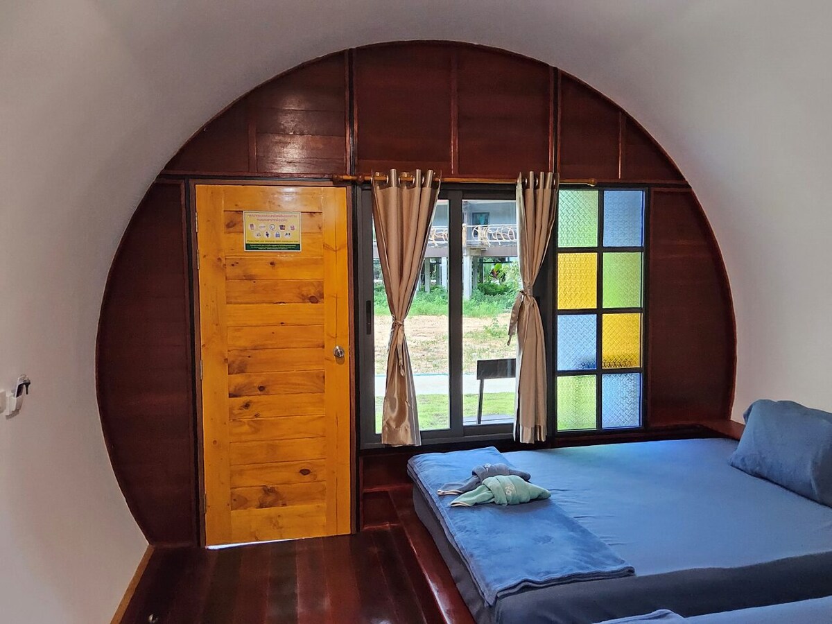 „Singha Room“. Es befindet sich neben dem Berg. In einer ruhigen und schattigen Gegend, mit Bäumen und Blumen rund um das Grundstück, weit genug von den Kunstinstallationen entfernt, dass es keine Lärmbelästigung geben wird, aber es ist möglich, zum Kunstbereich zu gehen, um zu sehen, wie Einheimische mit buddhistischer Kunst arbeiten. Und über die Reise: Wir haben viele Reisen mit Einheimischen, um die schöne Natur und nicht-touristische Orte zu besuchen. Du kannst Bilder nach Namen von „AoLuek Local Tours“ überprüfen und Dende kontaktieren, um die Ausflüge zu planen.