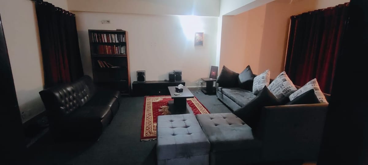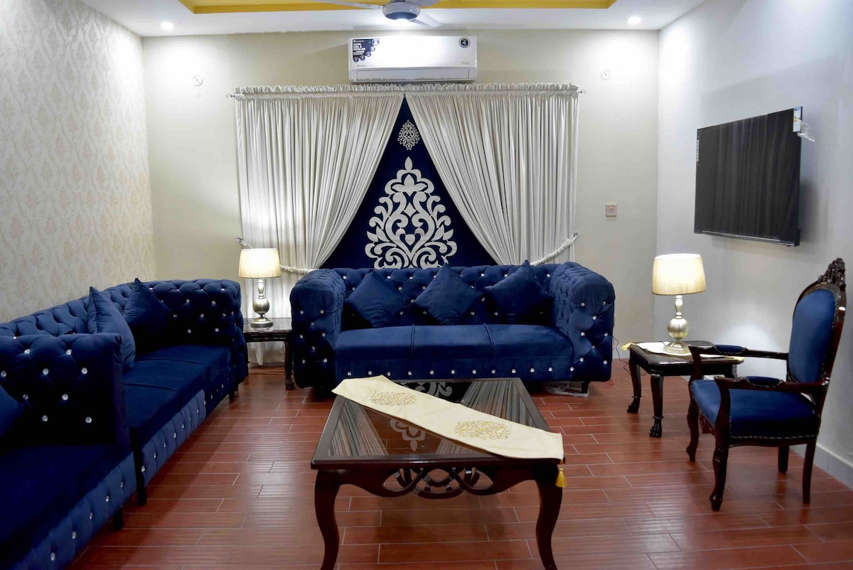 A very calm and peaceful place in Islamabad to enjoy your stay with your friends and family. Amenities: Fully furnished Water dispenser with fridge cabin. Separate Kitchen. Separate laundry area with washer. Air Conditioner Microwave Oven We also provide Car rentals, pick & drop services on demand. Enjoy your stay with us!