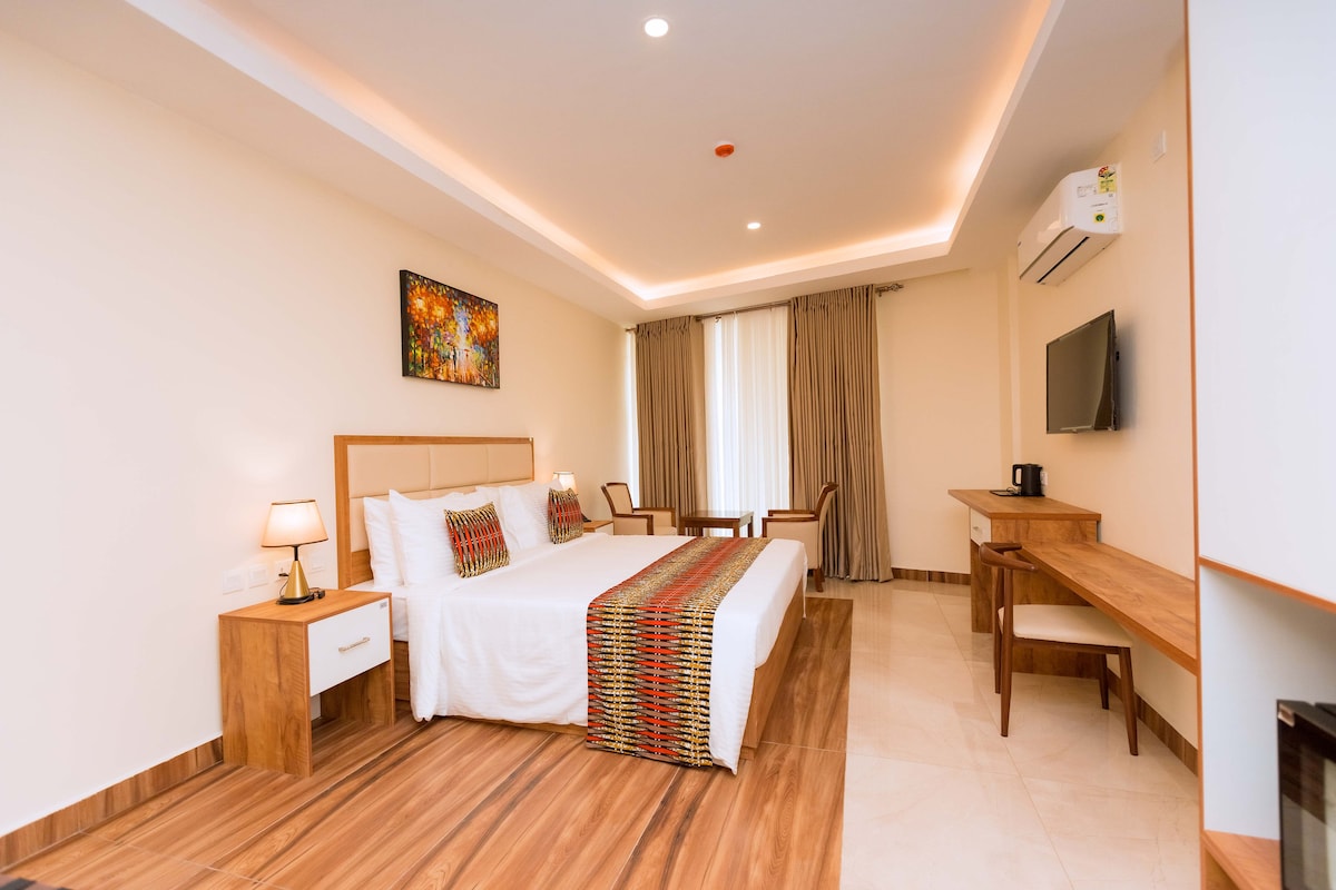 Discover modern comfort in the heart of Kigali at our premium hotel. Queen size bed with premium bedding Private bathroom with shower Minibar and safe box Kigali city view Free high-speed WiFi Flat-screen TV with international channels Spacious work desk Daily housekeeping service On-site restaurant 24/7 room service Continental breakfast Bar and lounge 24-hour reception Private secure parking Airport shuttle available Book now for an exceptional hotel experience in Kigali!