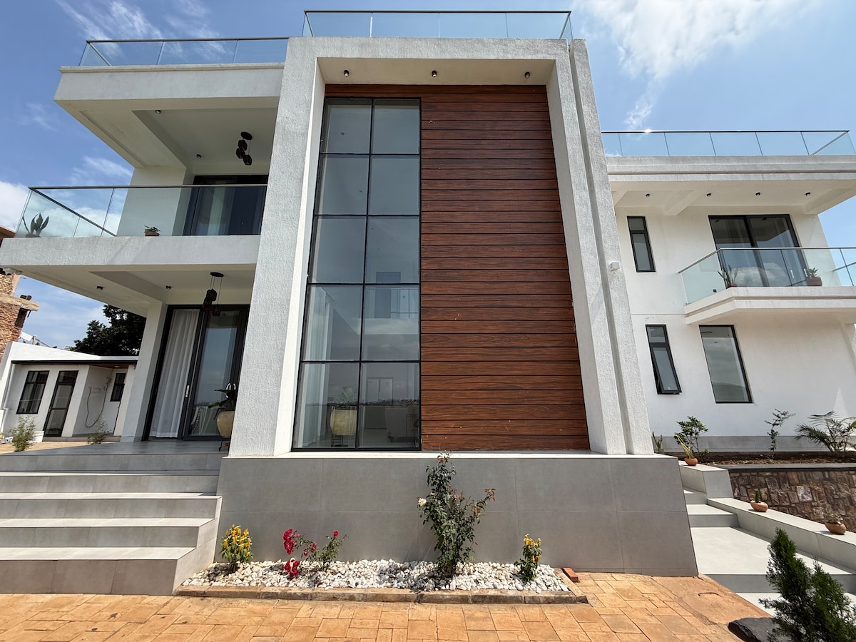 Dies ist ein komfortables, modernes Haus, das komplett eingerichtet ist, mit einem offenen Wohnbereich und einer gut ausgestatteten Küche. Es bietet auch zwei Kingsize-Schlafzimmer und einen Futon mit einer privaten Terrasse und Blick auf Kigali. Freu dich auf einen Pool und einen modernen Fitnessraum. Zu den Nebenkosten gehören Glasfaser-WLAN, ein Fernseher, eine Waschmaschine (Waschmaschine und Trockner), ein 24/7-Sicherheitsdienst und eine private Garage. Haustiere und Rauchen sind verboten. Langzeitaufenthalte sind verfügbar und können besprochen werden.