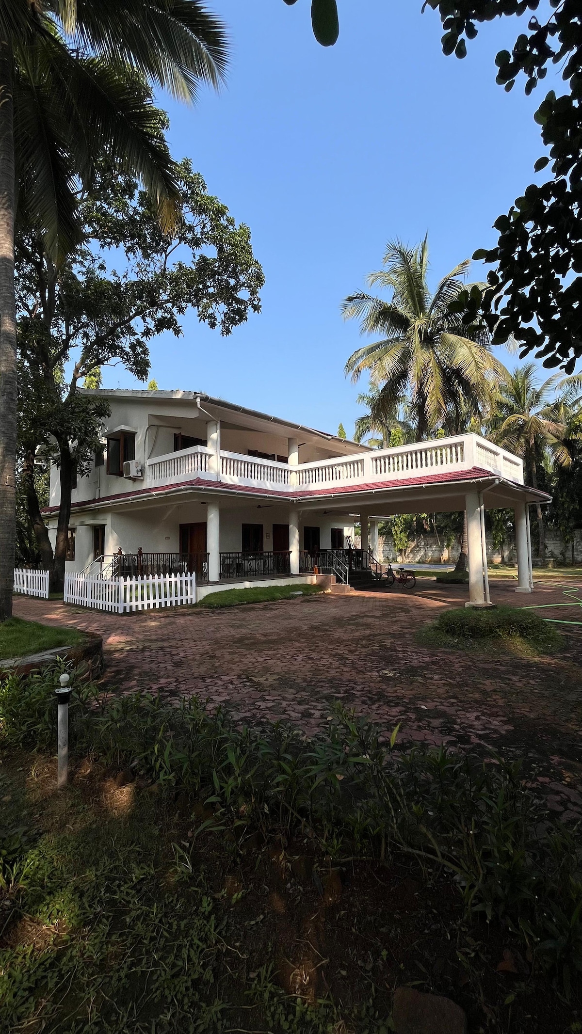 Eine ruhige 4 BHK private Villa, nur wenige Minuten vom ruhigen Thal Beach in Alibag entfernt. Genieße den Komfort eines privaten Pools, eines wunderschön angelegten Gartens und moderner Annehmlichkeiten und Innenräume — perfekt für Familien und Gruppen, die einen ruhigen Urlaub an der Küste suchen. Das Anwesen verfügt über 2 Zimmer im Erdgeschoss und 2 Zimmer im ersten Stock. Es bietet einen atemberaubenden Blick auf die Berge von der Terrasse, ausreichend Parkplatz, einen gemütlichen Sitzbereich auf dem Rasen und einen perfekt großen Pool, ideal für 10 bis 12 Gäste.