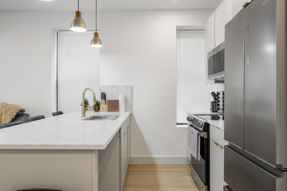 Genieße während deines Aufenthalts im Erdgeschoss unseres Windsor Terrace Townhomes volle Privatsphäre – bietet Platz für bis zu 4 Personen mit Queensize-Bett, Schlafsofa und Kinderbett. Industrielle Atmosphäre mit Ziegelwänden, voll ausgestattete Küche (nur leichtes Kochen), LG Smart TV (Netflix/Apple TV), High-Speed-WLAN, Klimaanlage, Heizungen und Luftentfeuchter. Haustierfreundlich. Schritte zum Prospect Park, lokale Juwelen wie Krupa Lebensmittelgeschäft & Bauernmärkte. 5 Gehminuten zur U-Bahn F/G; 30-35 Minuten zum Financial District, 40-45 Minuten nach Midtown. Kostenloser Parkplatz. Selbst-Check-in. Ruhige Wohn-Oase!