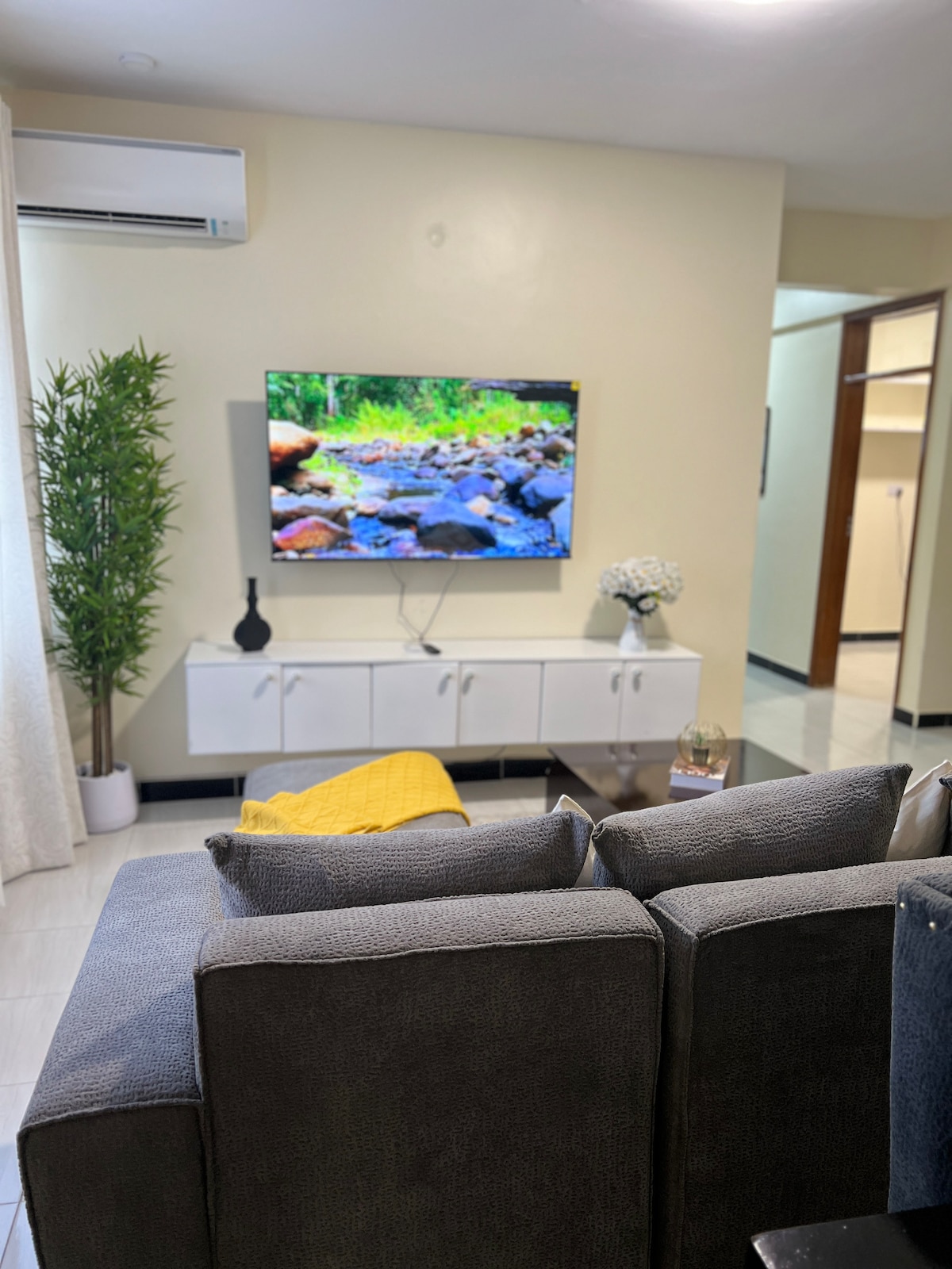 Die Msindi-Wohnung ist ein besonderer Ort zum Leben in einem großen Gebäude namens Uhuru Height. Dieses Haus ist wirklich cool, weil es 4 Zimmer hat, darunter ein gemütliches Sitzzimmer, in dem du dich entspannen kannst. Es gibt auch eine offene Küche und einen Essbereich . Unsere Wohnung befindet sich im 14. Stock, was ziemlich hoch oben ist! Aber keine Sorge, es gibt einen Aufzug . Im Gebäude gibt es ein Swimmingpool, in dem du planschen und eine tolle Zeit verbringen kannst. Es gibt auch ein Fitnessstudio, in dem du Sport treiben und gesund bleiben kannst.