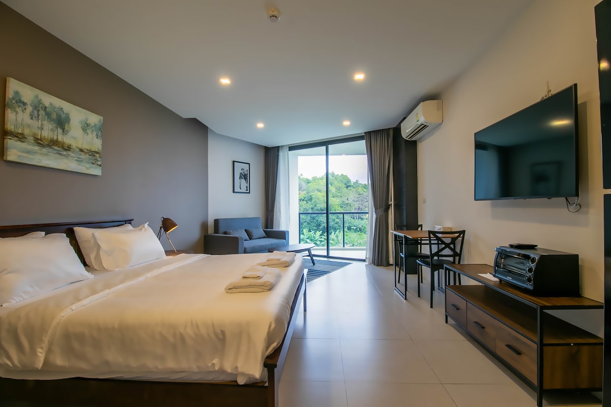 Verbringe deinen Urlaub an den weißen Sandstränden von Mae Phim in einem wunderschönen tropischen Refugium. Diese brandneue Wohnung befindet sich direkt am Strand und bietet den Gästen das komplette gehobene Eigentumswohnungserlebnis. Inklusive privatem Strandzugang und Annehmlichkeiten im Resort-Stil. Während deines Aufenthalts bei uns genießt du von der privaten Terrasse aus eine atemberaubende Aussicht und atemberaubende Sonnenuntergänge. Ein perfekter Ort, um bei einer morgendlichen Tasse Kaffee oder einem abendlichen Glas Champagner zu entspannen. Entdecke die reiche Kultur und die exotische Schönheit von Mae Phim.