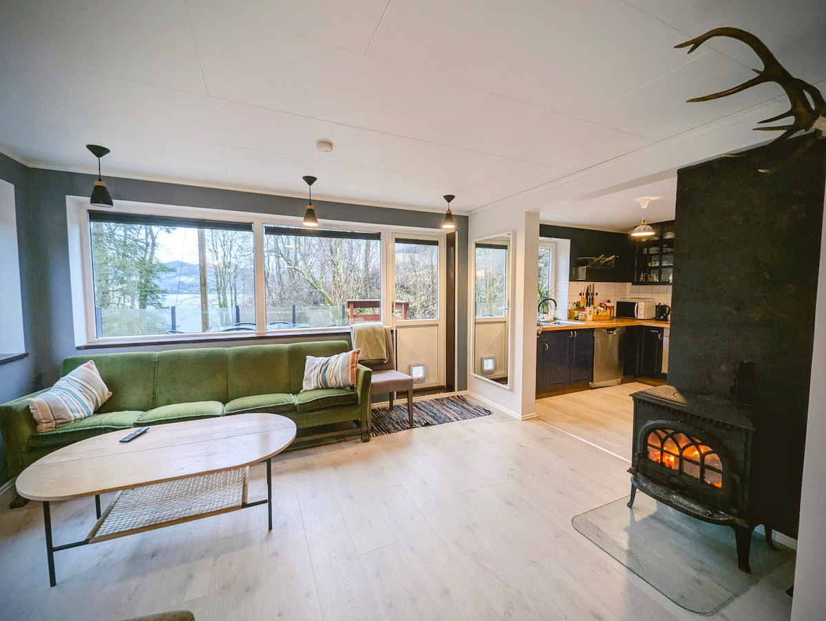 Willkommen in unserer charmanten Hütte mit atemberaubendem Blick auf den Fjord, eingebettet zwischen Bäumen, nur 30 Minuten von Bergen entfernt. Die Hütte verbindet rustikalen Charme mit modernem Komfort und schafft einen ruhigen Kurzurlaub. Entspanne dich auf dem Balkon, lausche Vögeln und genieße die beruhigenden Geräusche eines nahegelegenen Baches Nur wenige Schritte entfernt, ist der Fjord schön zum Schwimmen im Sommer - obwohl beachte, dass die Küste natürlich ist und gelegentlich Bootsaktivitäten sehen kann. Wir bieten auch kostenlose Kajaks auf eigene Verantwortung an.