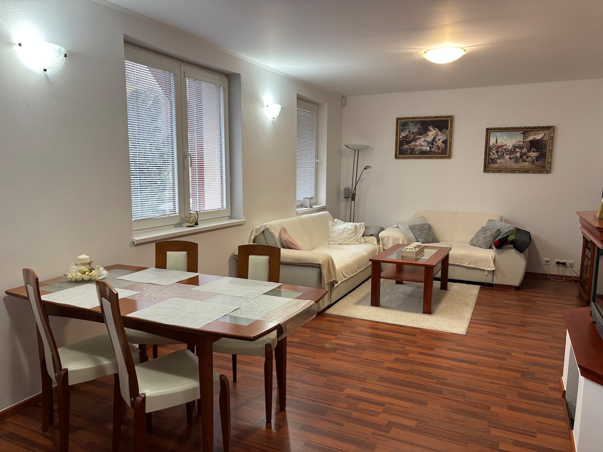 Priestranný a komfortný apartmán v rodinnom dome na prízemí ponúka príjemné bývanie. Apartmán má veľkú terasu s pohodlnou rohovou sedačkou a výhľadom do upravenej záhrady. Pred domom je súkromné detské ihrisko. Dom má samostatné 2 bytové časti so samostatným vchodom a 4. parkovacími miestami.