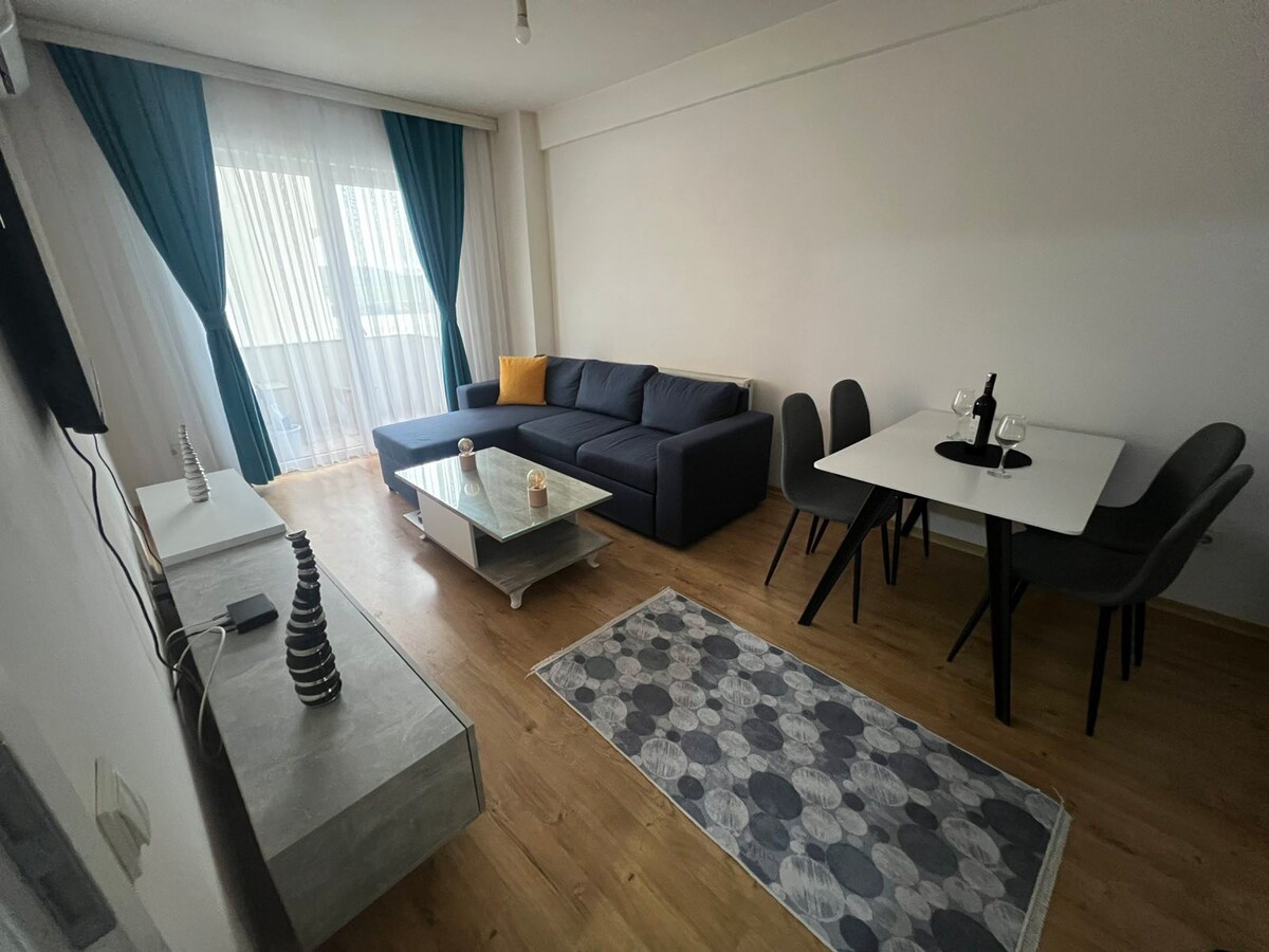 Willkommen in deiner stilvollen, voll ausgestatteten, gemütlichen und farbenfrohen 55 m ² großen Wohnung im Herzen von Fushe Kosova! Diese schicke Unterkunft verfügt über eine bequeme Bettmatratze mit 40 cm Breite, perfekt für einen erholsamen Schlaf. Ideal für digitale Nomaden, bietet es Highspeed-WLAN-Internetzugang und ein privates Parkhaus. In einem neu erbauten Gebäude gelegen, genieße den Komfort eines eigenständigen Check-ins/Check-outs und sorgt für einen reibungslosen Aufenthalt in dieser urbanen Oase.