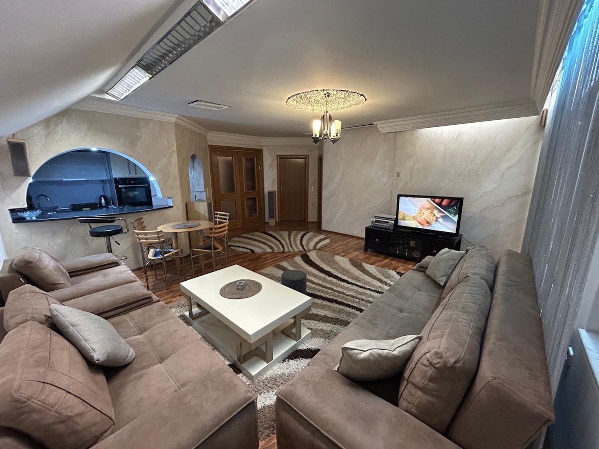 Die Ferienwohnung bietet Platz für 5-7 Personen und hat 120 m ². Die Wohnung hat zwei große Schlafzimmer und ein kleineres. Es gibt ein großes Wohnzimmer, eine Küche und ein Badezimmer. Es gibt zwei Balkone; einer hat einen perfekten Blick über Prishtina. Die Wohnung verfügt über 24 h Internet, Wasser und Strom, Klimaanlage, Zentralheizung und Überwachungskameras im Freien für Ihre Sicherheit. Aktash Viertel ist sehr ruhig und schön, nur 6-7 Minuten vom Stadtzentrum entfernt. Das Hauptquartier der OSZE und der GIZ liegt 2 Minuten von der Wohnung entfernt. Es gibt jede Menge Lebensmittelgeschäfte in der Nähe und sehr schöne Restaurants und kleine Bars in der Nachbarschaft. Die Wohnung ist komplett mit Möbeln ausgestattet, sie verfügt über einen Geschirrspüler, eine Waschmaschine und die Küche verfügt über alle Küchengeräte und Zubehör. Die Wohnung ist rauchfrei, verfügt aber über zwei Balkone für frische Luft und die Raucher. Ich stelle zur Verfügung: - Bettwäsche - Handtücher - Alle notwendigen Küchenausstattungen - Kaffeemaschine einschließlich Kaffee für Ihren Aufenthalt - Grundnahrungsmittel: Olivenöl, Essig, Salz und Pfeffer, Zucker, Tee - Geschirrspüler - Waschmaschine - WI-FI - Kabel-TV Wir haben einen Garten, den Sie nach Belieben nutzen können.