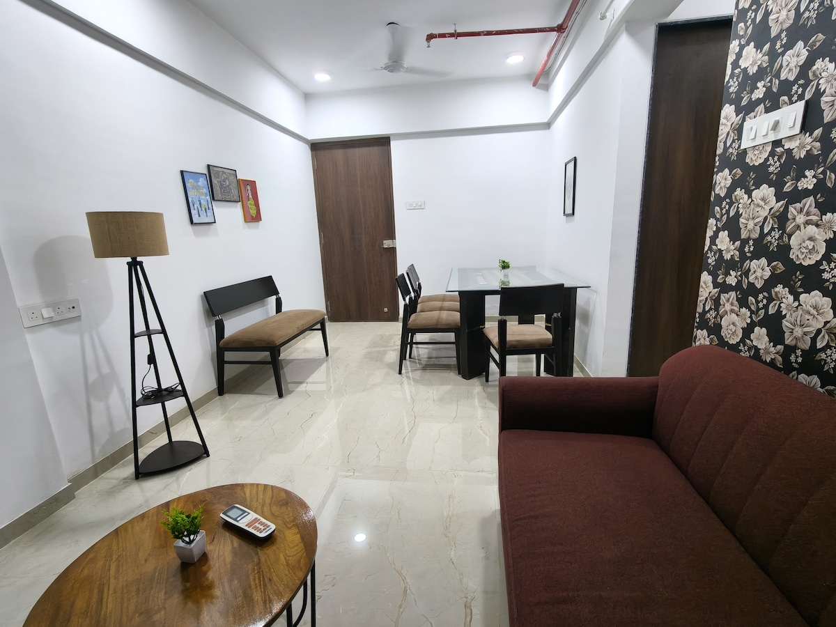 Stylish 1 BHK apartment near Ram Mandir Station 3 Minutes walk to Nesco / Nirlon A modern 1 BHK apartment with excellent metro access next to Ram Mandir Station. Enjoy comfortable living, contemporary design, and proximity to cinemas, dining, and shopping—ideal for couples or solo travelers.