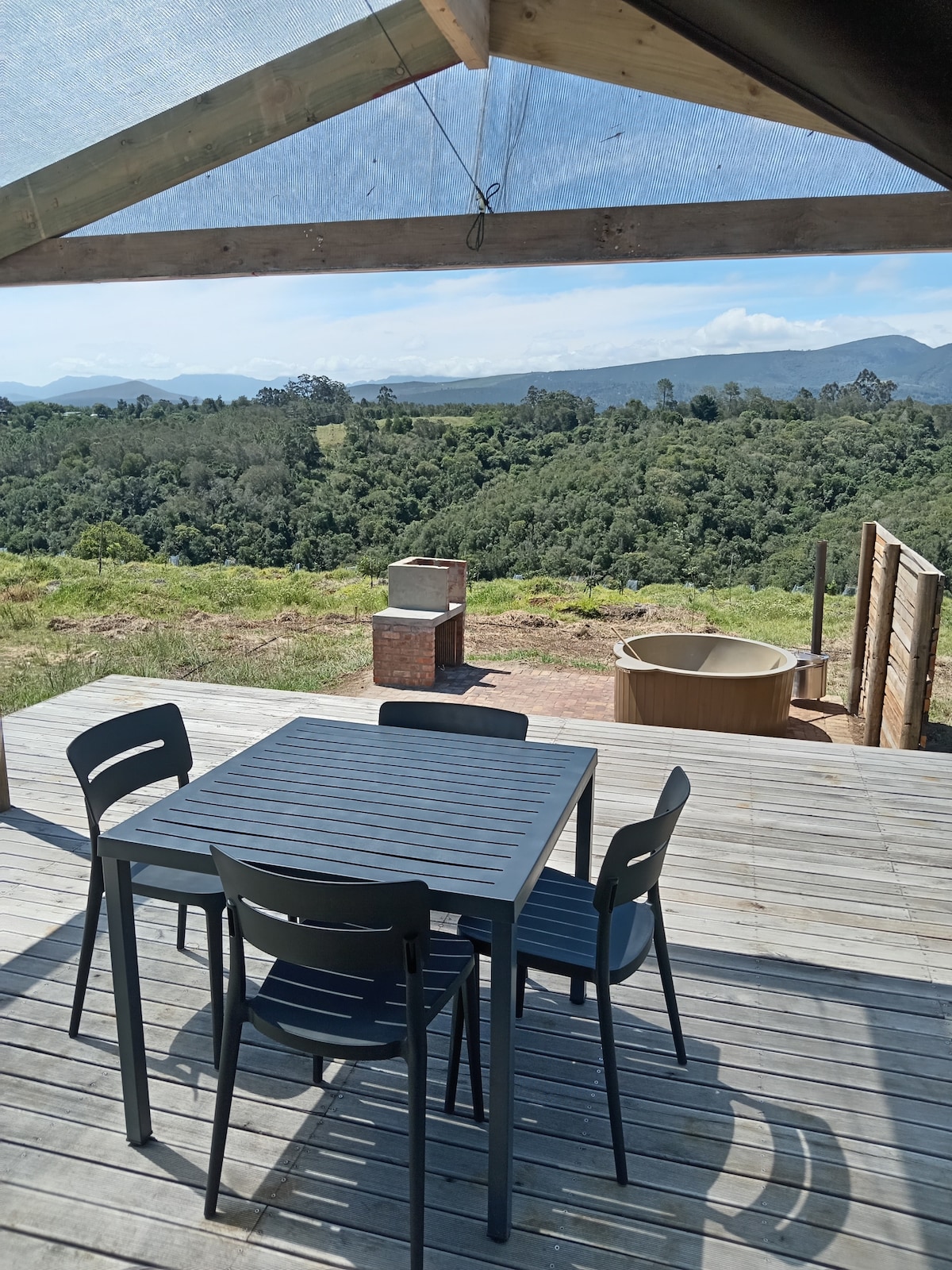 Eine umlaufende Hütte auf einer erhöhten Terrasse mit offenem Blick in den Wald vom Bett aus. Dieser ruhige kleine Ort verfügt über eine angeschlossene Außendusche, Toilette und eine Küchenzeile im Camp-Stil. Am Waldrand gelegen, mit Spaziergängen in den Wald und ins Zentrum zu vielen Sehenswürdigkeiten in der Gegend. Das Paradies für Suchende im Freien! Nutze unsere saubere und gut ausgestattete Gemeinschaftsküche sowie Braai-Bereiche, eine Bar, einen Tauchbecken/Whirlpool. Sie haben auch Zugang zu den verschiedenen Waldbädern.