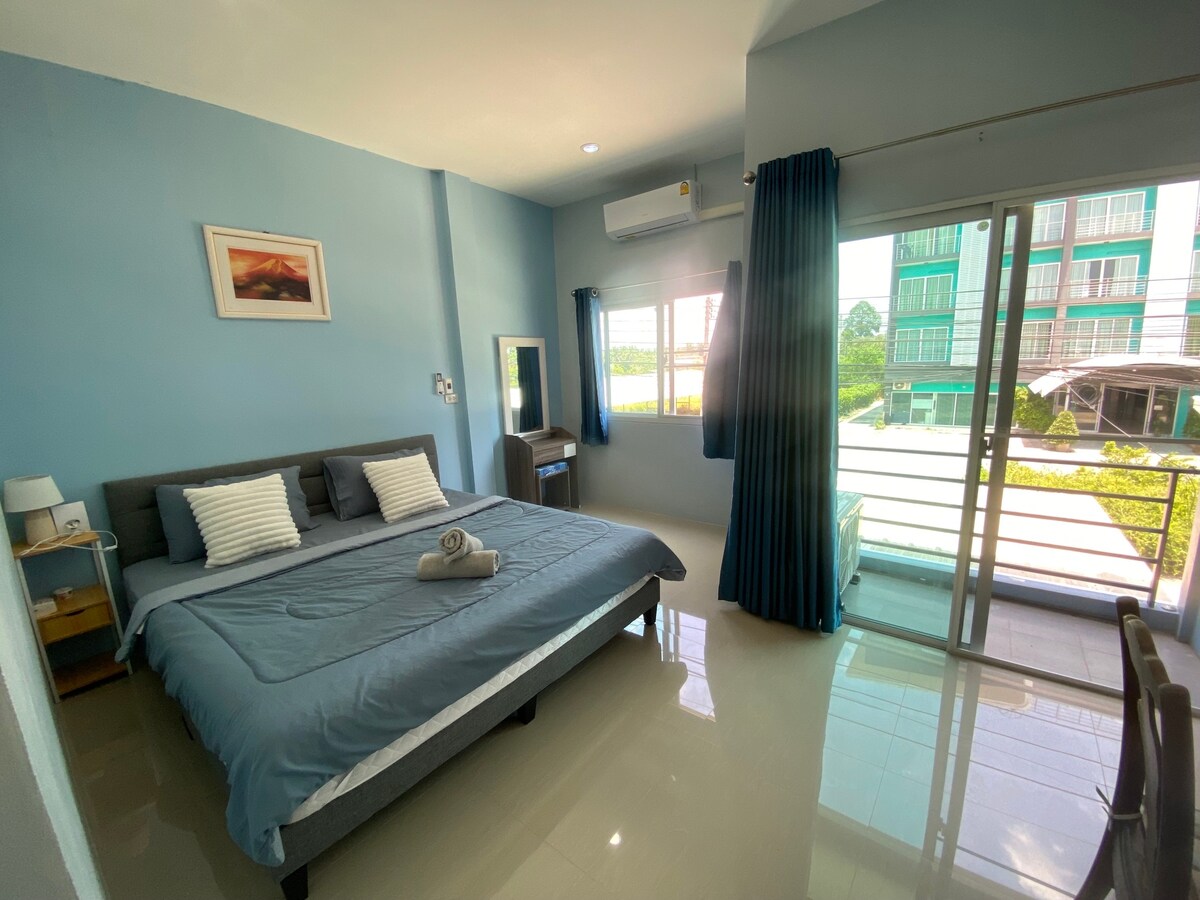 Zwei einstöckige Häuser nebeneinander, ruhig, geeignet für alle, die langfristig bleiben möchten. 👉🏼1 Schlafzimmer (Klimaanlage, Bettwäsche, Kissen) 👉🏼1 Badezimmer (Warmwasserbereiter) 👉🏼1 Küche (Kühlschrank + Mikrowelle) 👉🏼1 Wohnzimmer + Platz vor dem Haus Der Hinterhofbereich verfügt über einen eingezäunten im Hof. In der✴ Nähe von 7-Eleven, Tankstelle, europäischen, thailändischen und Halal-Restaurants, nur 200 Meter entfernt. ✴Nur 100 Meter von der Bank entfernt. Nur 2✴ Minuten vom Strand Klong Dao entfernt.