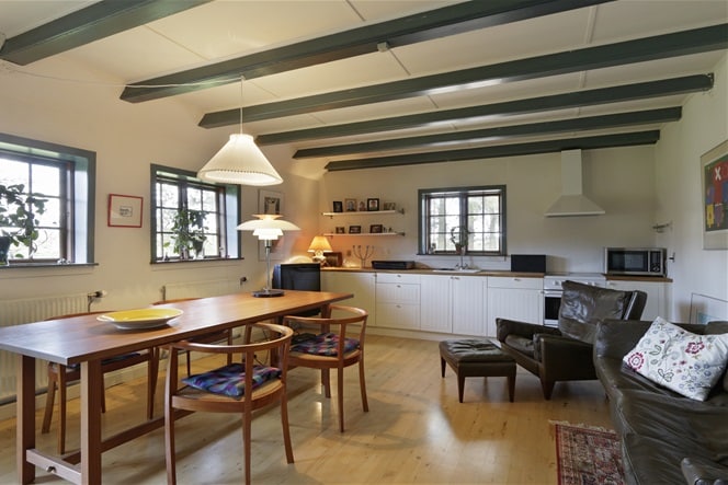 Gemütliches Nebengebäude, wunderschön am See Ollerup gelegen. Der Anbau wurde 2021 mit rohen Backsteinwänden und Holzdecken errichtet, was eine ganz besondere Atmosphäre verleiht. Im Wohnzimmer befindet sich ein neues 140 x 200 cm großes Bett, sowie ein Dachboden. Es gibt einen eigenen Eingang, eine große Holzterrasse und Zugang zum See Ollerup. Es ist möglich, ein Ruderboot zu leihen. Küche: Es gibt zwei Herdplatten, Kühlschrank mit kleinem Gefrierfach, Wasserkocher, etc