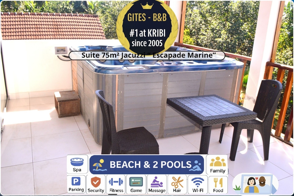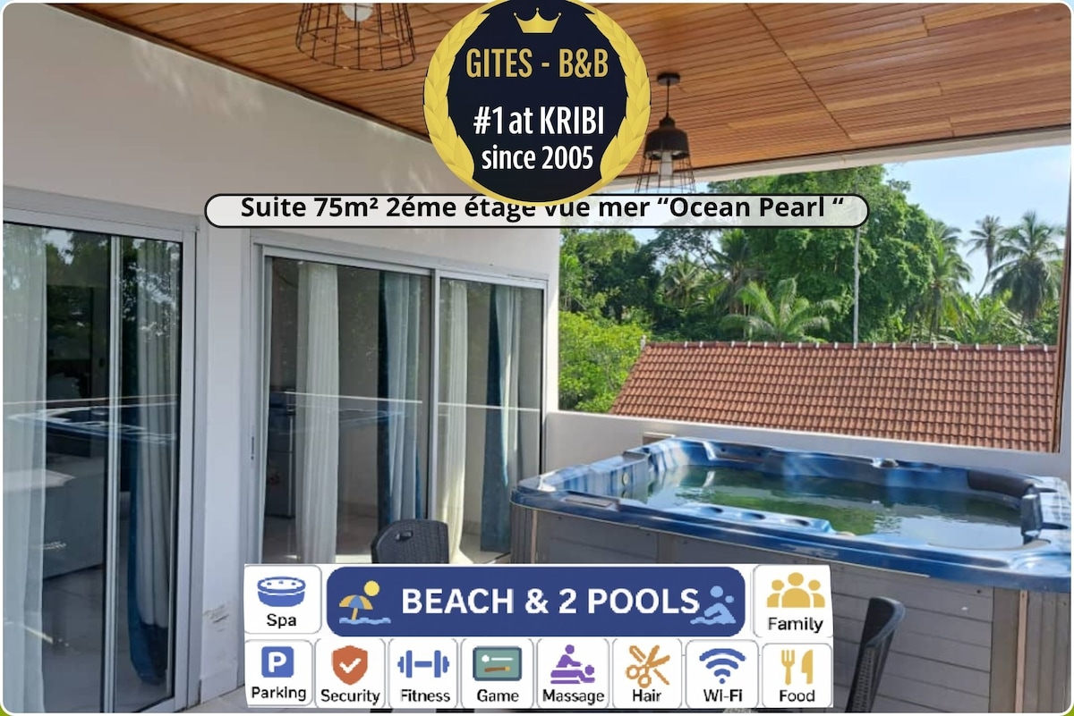 Willkommen in der CASA NICE, wo der Ozean Ihr nächster Nachbar wird. Diese Villa, eine ehemalige Hoteladresse, die wir in unser Familienrefugium verwandelt haben, beherbergt 2 bis 3 Familien in ihren 5 komfortablen Zimmern. Hier schlafen Sie ein und wachen auf, vom Gesang der Wellen gewiegt. Zwischen dem Baden an Ihrem Privatstrand, den in der Außenküche zubereiteten Mahlzeiten und der Betrachtung der nahe gelegenen Wasserfälle von Lobé verspricht jeder Tag Wunder und Gelassenheit