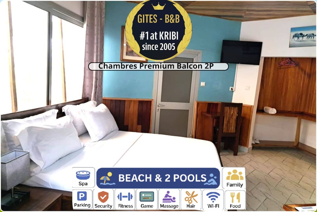 Les Gîtes de Kribi, ein familiengeführtes Hotel Restaurant, in dem wir Sie als die tropische Sonne, in der wir uns befinden, herzlich willkommen heißen. Ein Aufenthalt, wie Sie es sich erträumt haben, in Unterkünften zu erschwinglichen Preisen zwischen Meer, Wäldern und Sandstränden. Der erste Blick des Tages: das Meer und das Lächeln ... Im Restaurant, die
