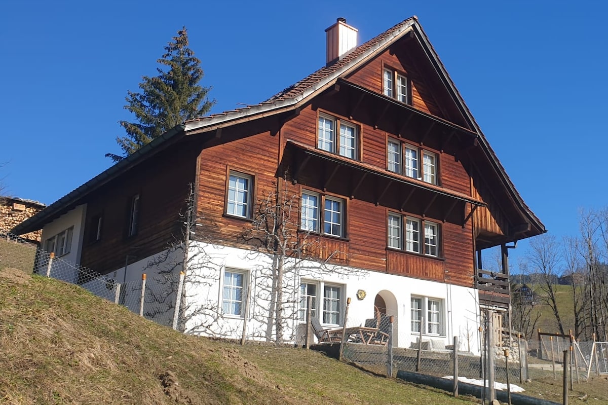 Das liebevoll eingerichtete 3. 5 Zimmer Ferienhaus mitten in der Natur, hoch über dem Neckertal bietet einen prächtigen Panoramablick mit Rundumsicht. Es ist ruhig gelegen und im Garten, am Kachelofen oder Chemine lässt es sich gut entspannen. Es hat kostenloses WLAN und eignet sich auch für Homeoffice. Das Neckertal ist ein romantisches, verträumtes Tal mit vielen Wander- und Biker Möglichkeiten und liegt zwischen den zwei Tourismusdestinationen Appenzellerland und Toggenburg.