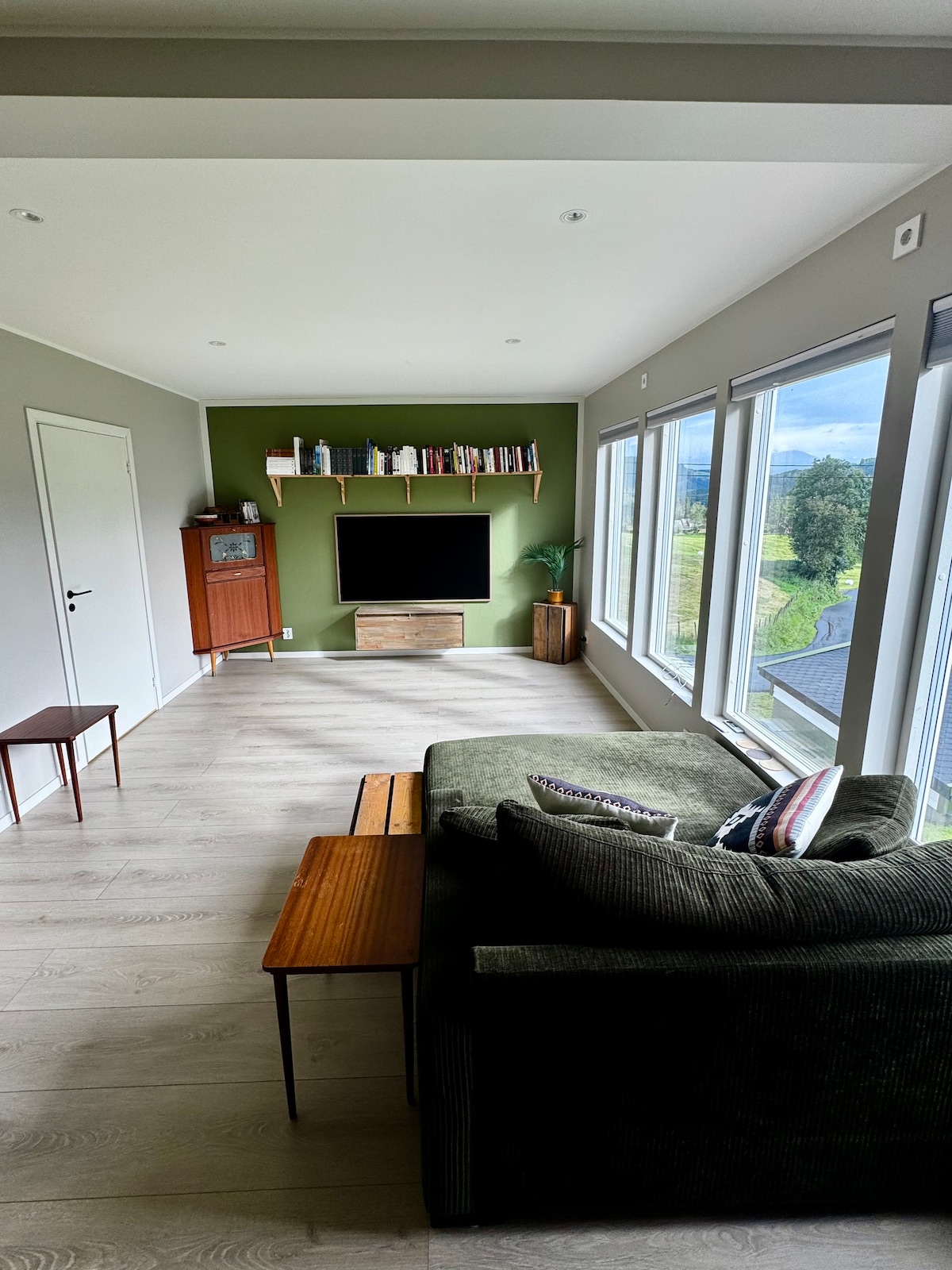 Helles und luftiges Gästehaus mit Blick auf die Berge und den Fjord