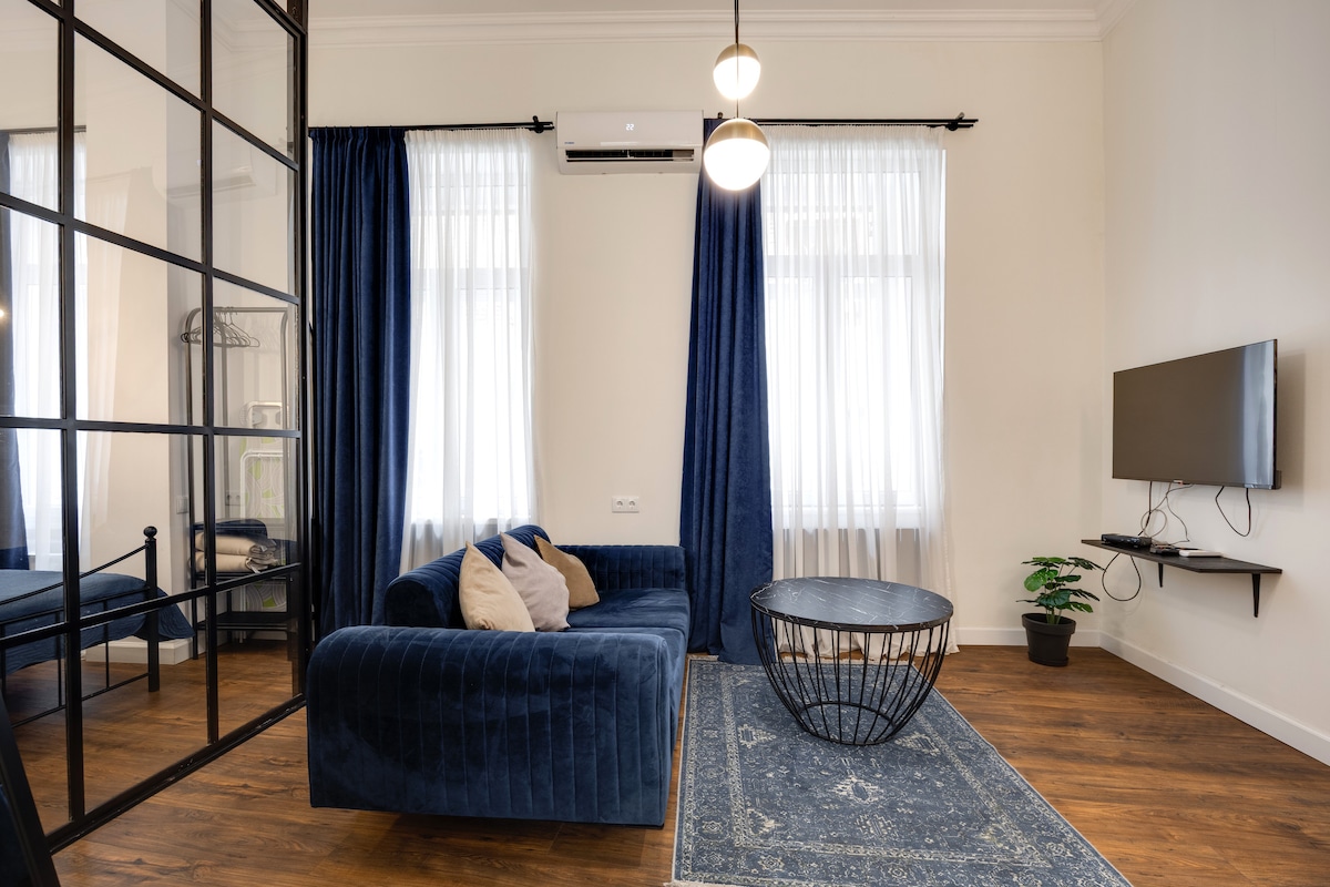 Historical stylish apartment with a projector in the bedroom, a cozy balcony and neon lights:) ㅤ It is located in a 200-year-old cultural heritage building, which is located in the historical part of the city, near the Tbilisi State Conservatory (in the evenings you can hear live music while sitting on the balcony). ㅤ The area is full of theatres, museums, pubs, restaurants and shops. A few minutes walk from Rustaveli Av. and Freedom Square, a bus stop to/from the airport, two metro stations.